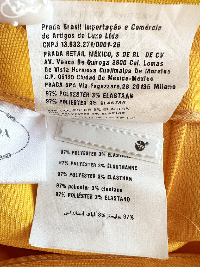 Mini-jupe Prada jaune à volants et ceinture avec patch logo