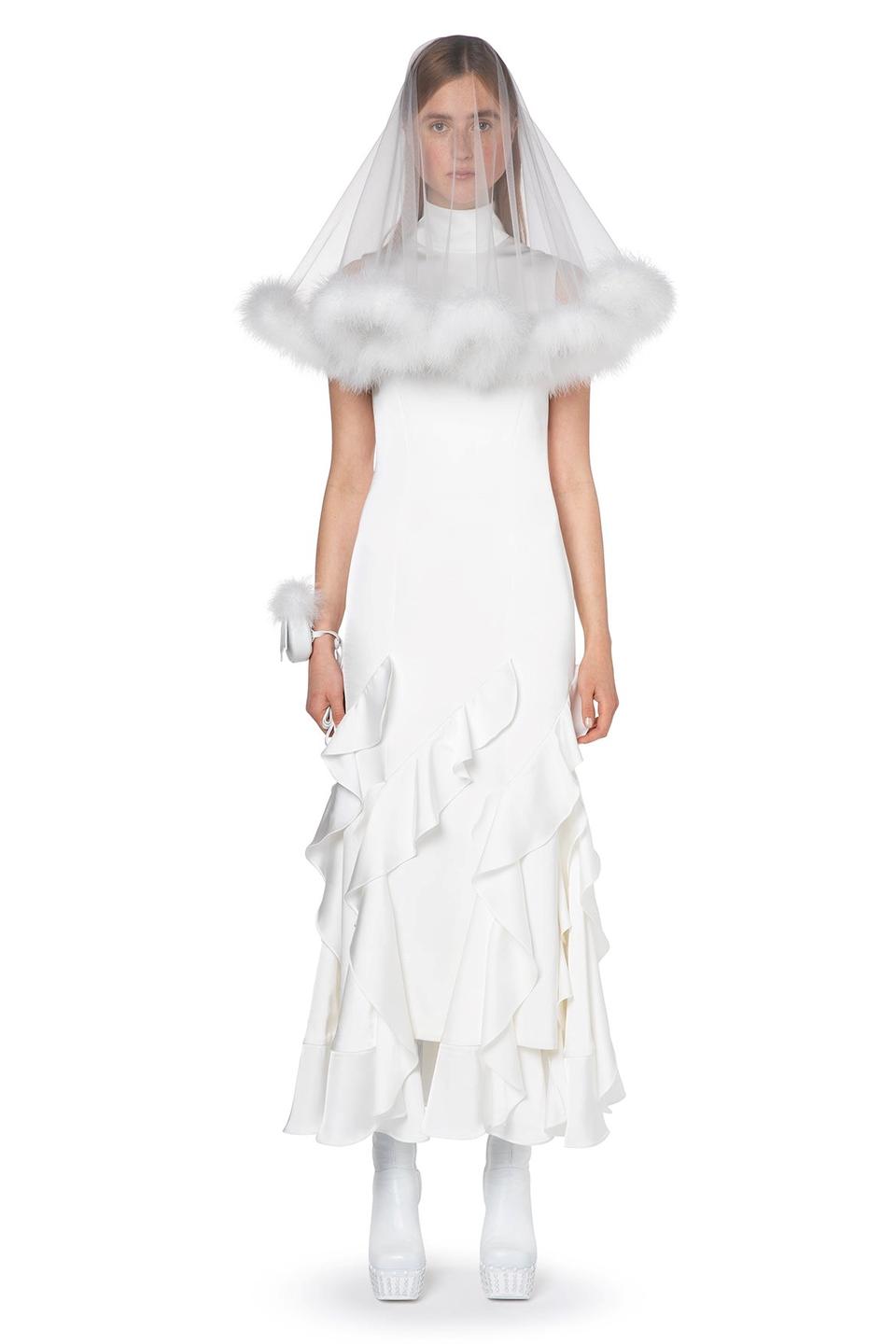 Opter pour une robe de mariée minimaliste ne signifie pas que vous devez renoncer à un style qui est aussi amusant et ludique. Particulièrement obsédé par cette robe de mariée 16ARLINGTON Lanao Cascading Ruffle, qui est toutes les affaires en haut et partie sur le fond grâce à sa conception formelle col roulé et jupe à volants.