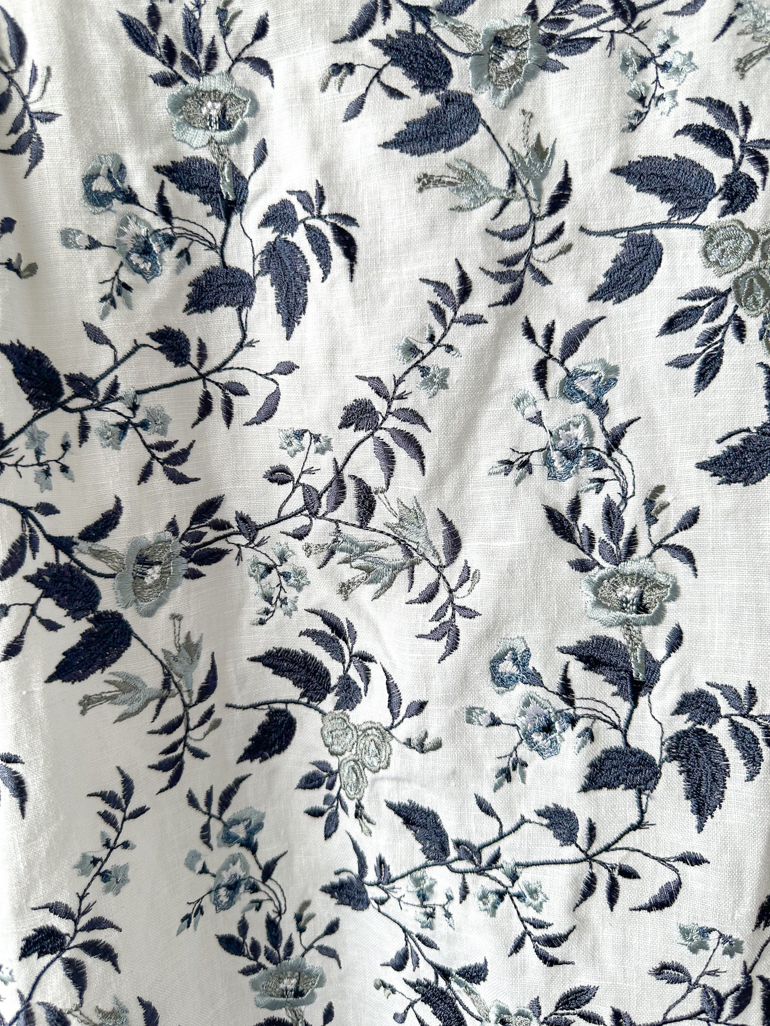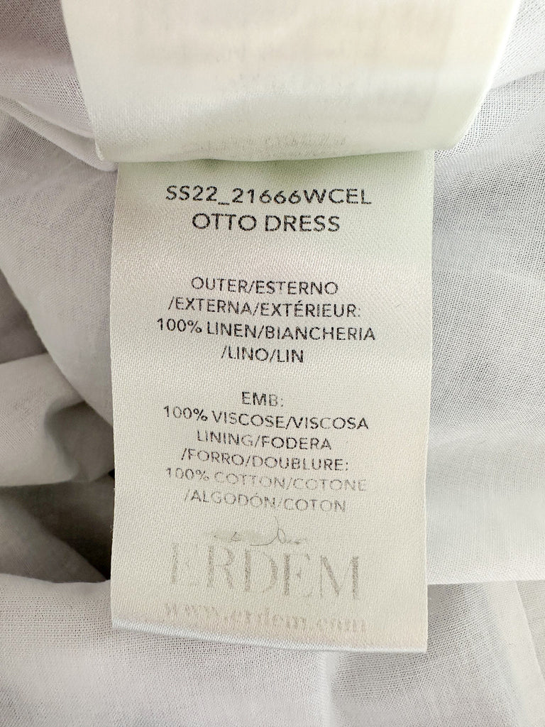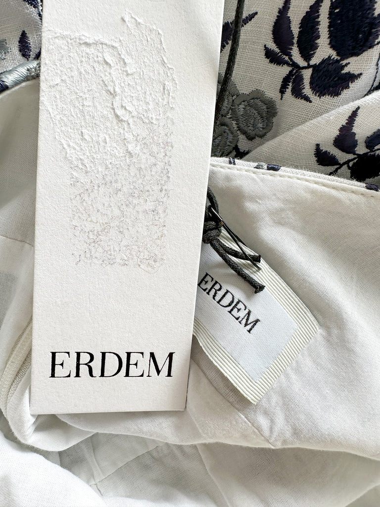 Embrassez le charme fantaisiste de la robe midi Otto brodée en lin fleuri d'ERDEM. Avec des fleurs bleues délicates et un corsage à panneaux, cette robe dégage une ambiance pastorale ludique. Fait de lin léger, il est parfait pour votre prochaine soirée estivale. Préparez-vous aux compliments! ;)