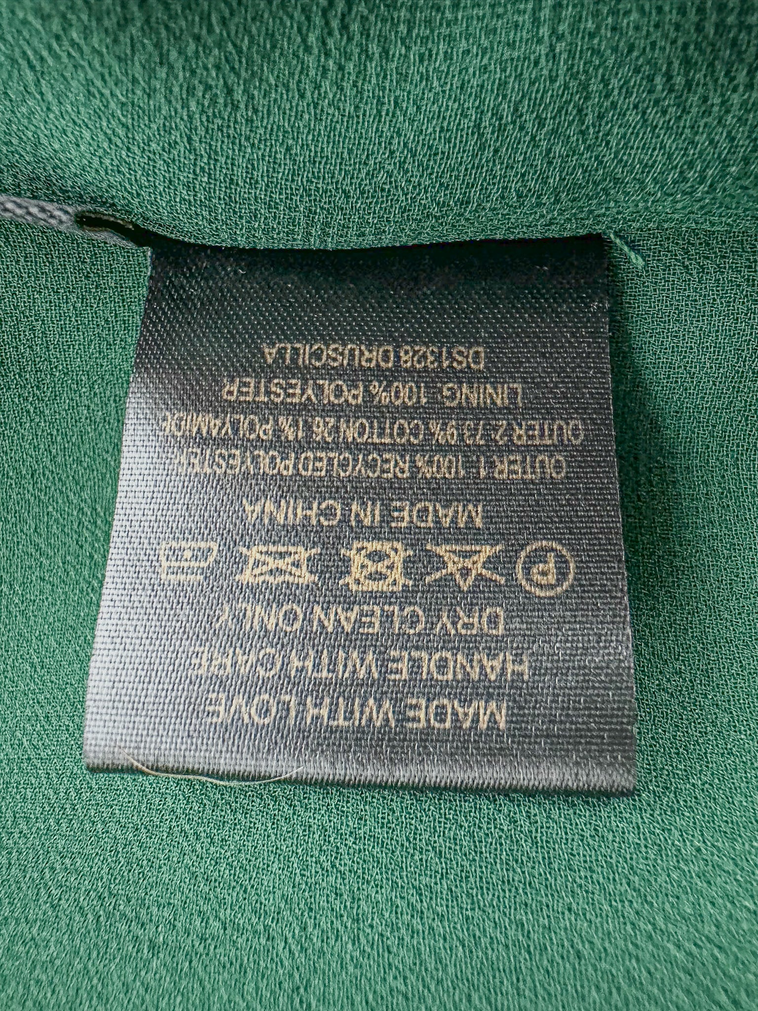 De La Vali Green Satin Lace Detail Open Front Mandarin Collar Mini Dress