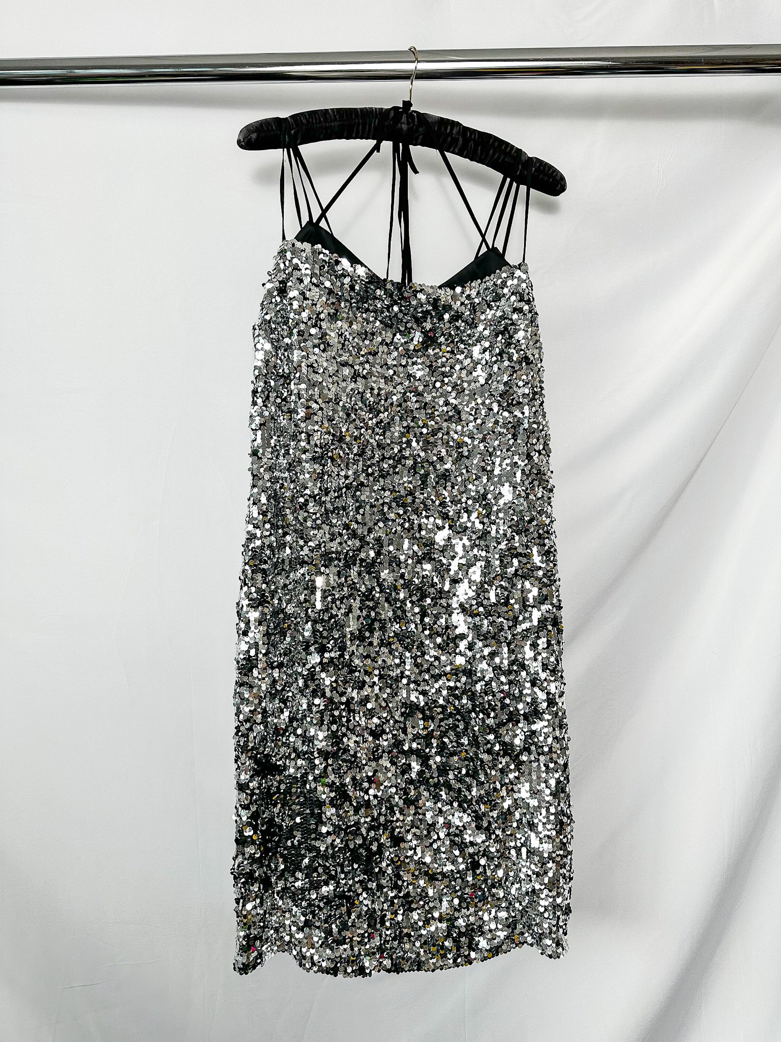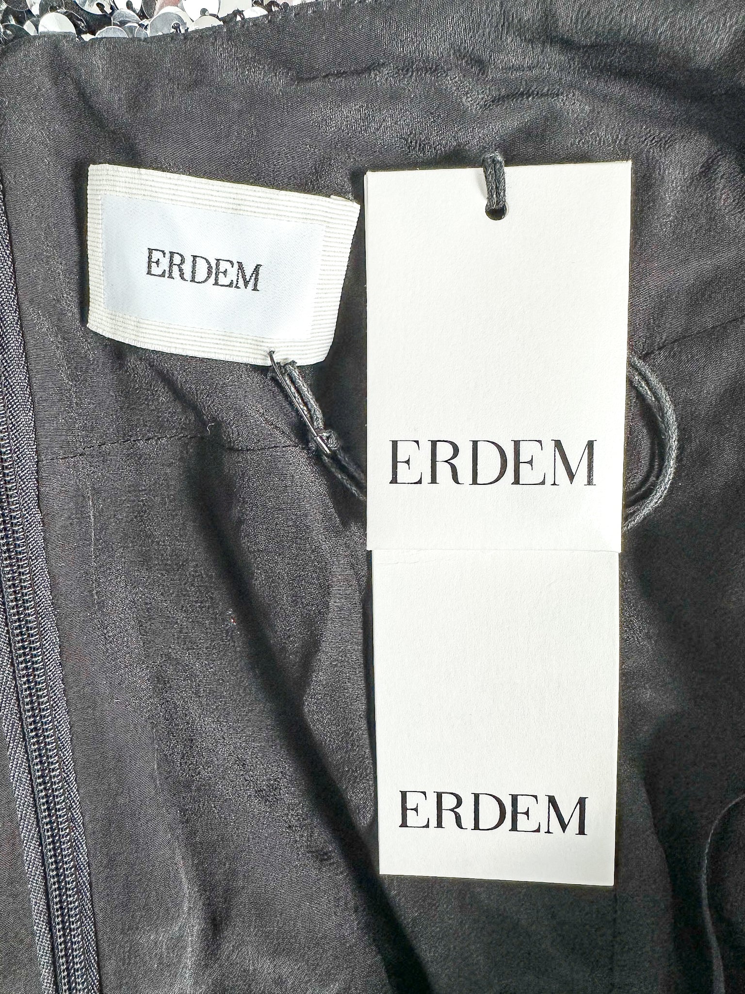 Elevate your evening wardrobe with this stunning Erdem silver sequinned dress. Crafted with meticulous attention to detail, the shimmering sequin embellishments catch the light beautifully, creating an enchanting sparkle with every movement. The delicate strappy design offers a refined silhouette that flatters the figure whilst maintaining an air of understated elegance. Perfect for black-tie events, cocktail parties, or special occasions where you want to make a memorable impression. This piece combines luxury craftsmanship with timeless sophistication, ensuring you'll feel confident and radiant all evening long.