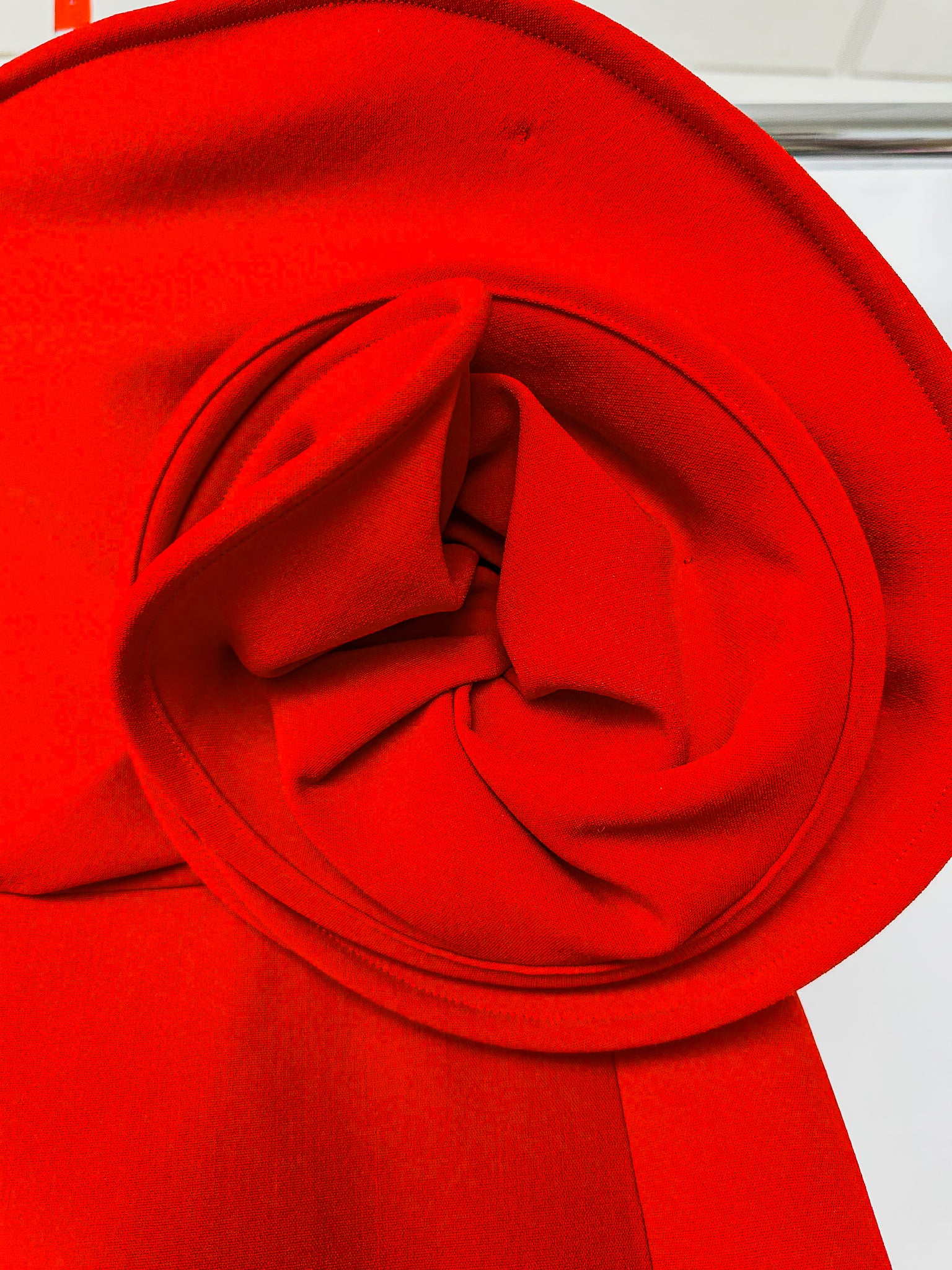 Magda Butrym Red Sculptural Rose Floral Appliquéd Wool Blend Corset Mini Dress