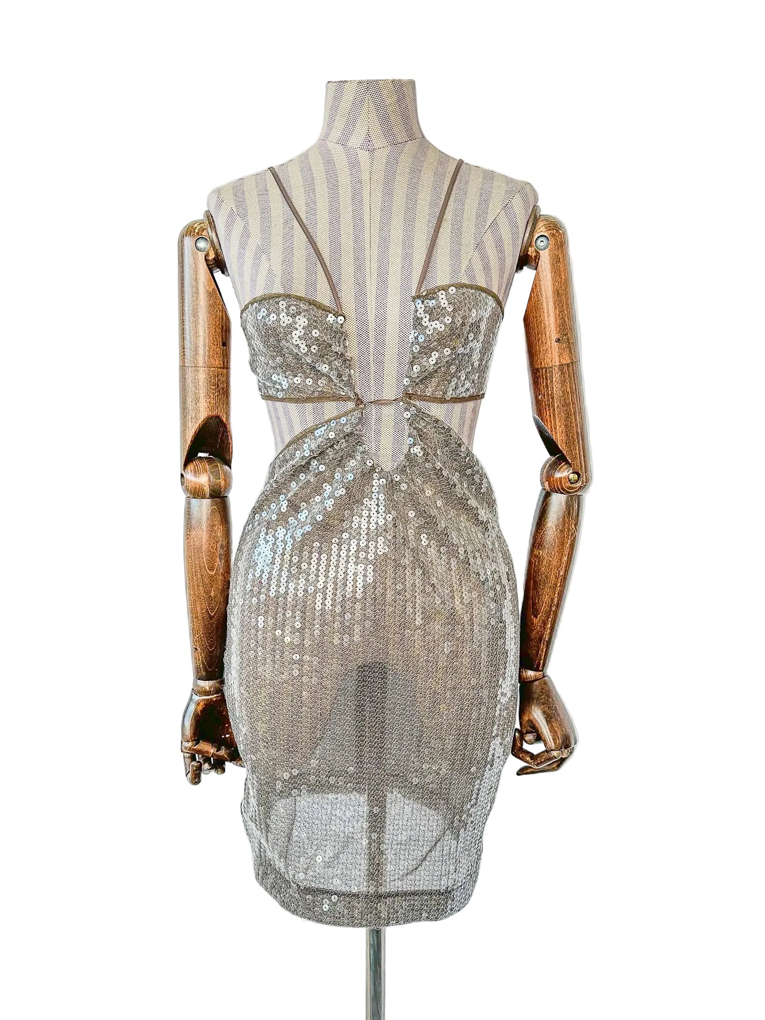 Nensi Dojaka Brown Sequin Cut-Out Mini Dress