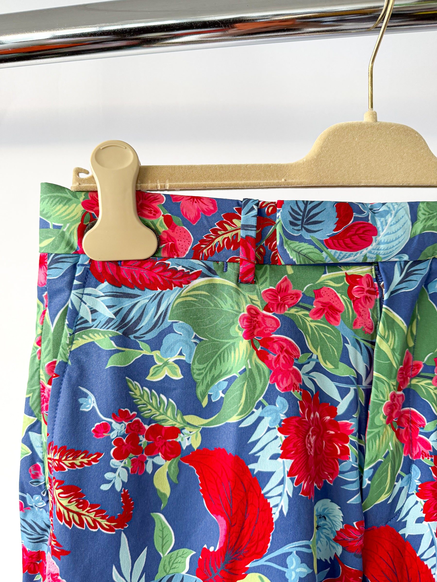 Ralph Lauren RLX tailored fit shorts in blue with vibrant pink and green florals. Premium quality with a refined, polished silhouette that works for casual wear or resort settings. Comfortable and stylish for any occasion.