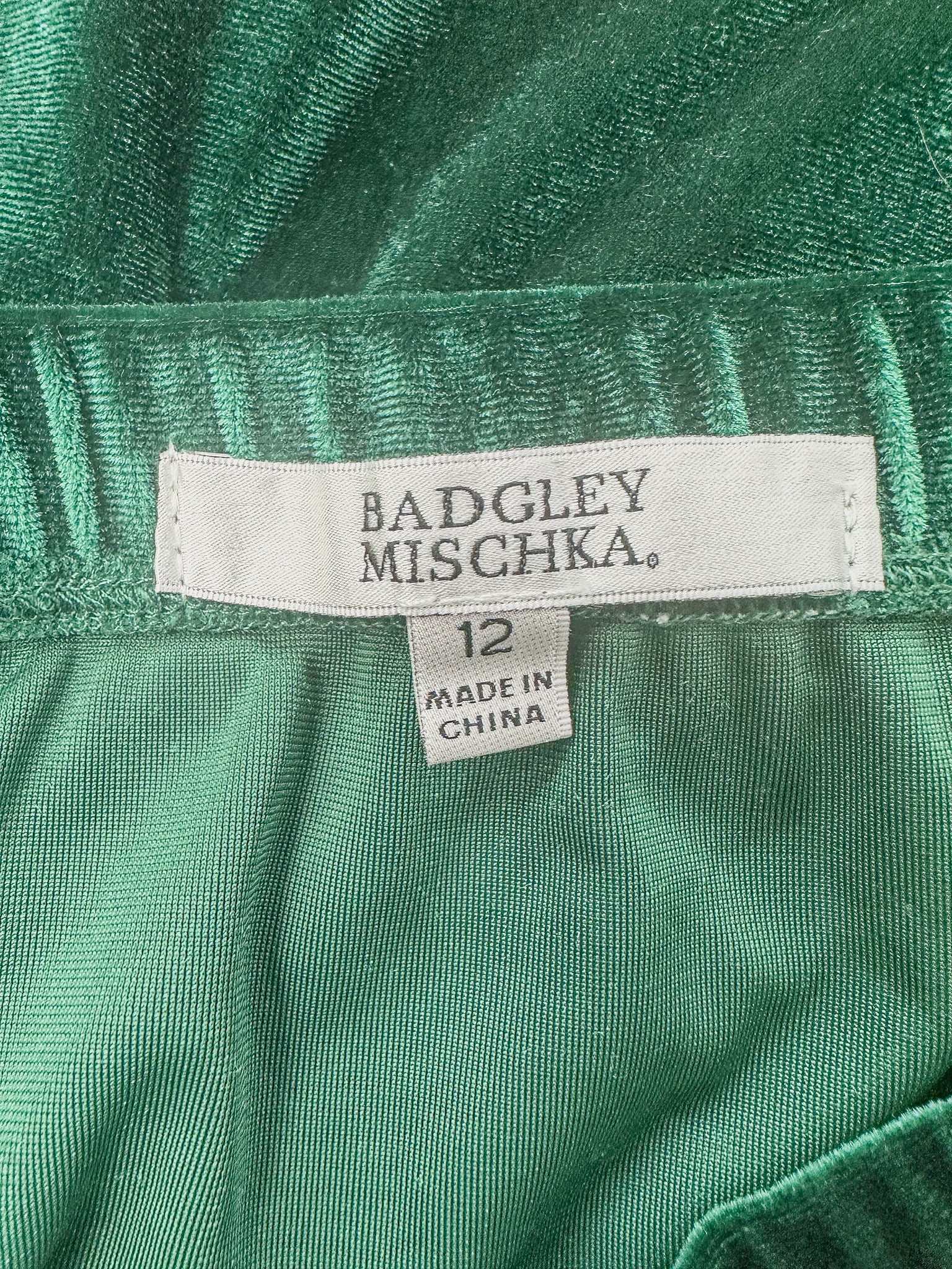 Badgely Mischka Girls Velvet Emerald Green Bow Front Blouse & Skirt 2-Piece Set