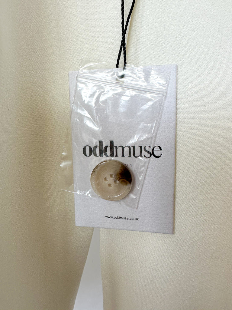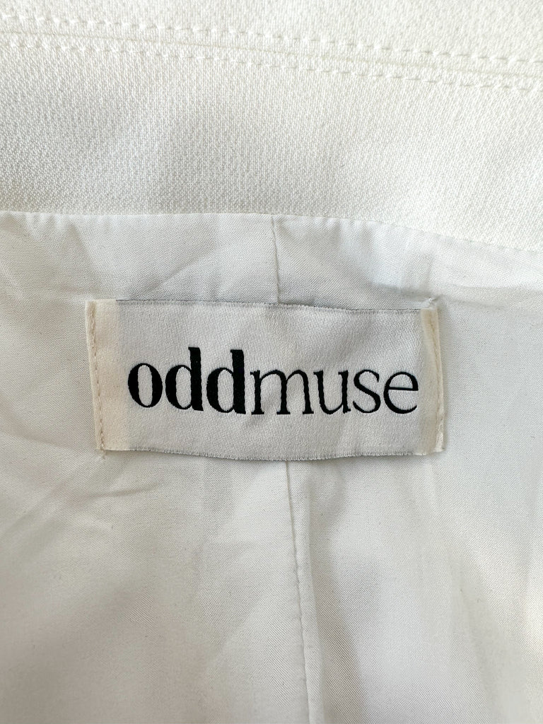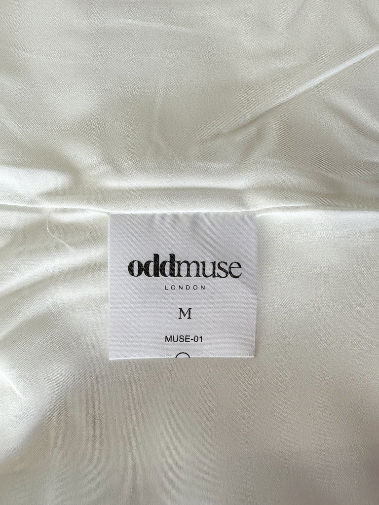 While brand new with tags, All our Odd Muse ex-returns so please consider them preloved. Odd Muse pieces may have writing on the inside labels to prevent returns to Odd Muse. As ex-returns, items will need to be washed as they may have dirt marks on them from being sat in a warehouse. We're testing Mid-Luxury brands like Odd Muse to see if our community of high end shoppers would be interested. We are not affiliated with Odd Muse (as much as we would love to be one day!).