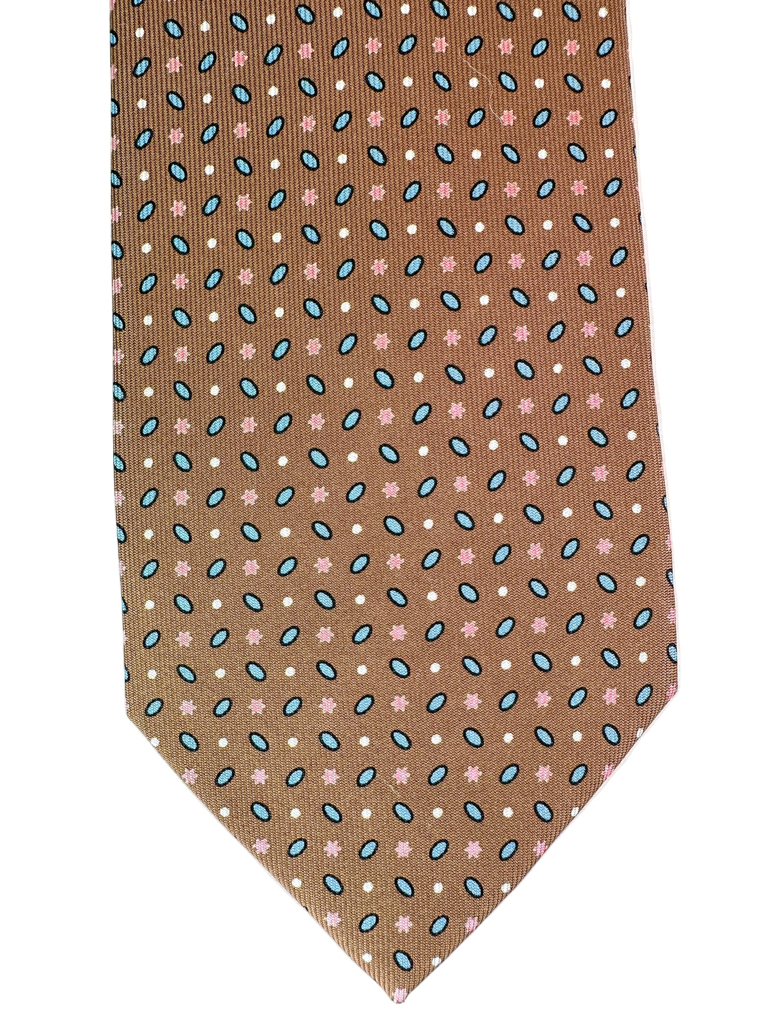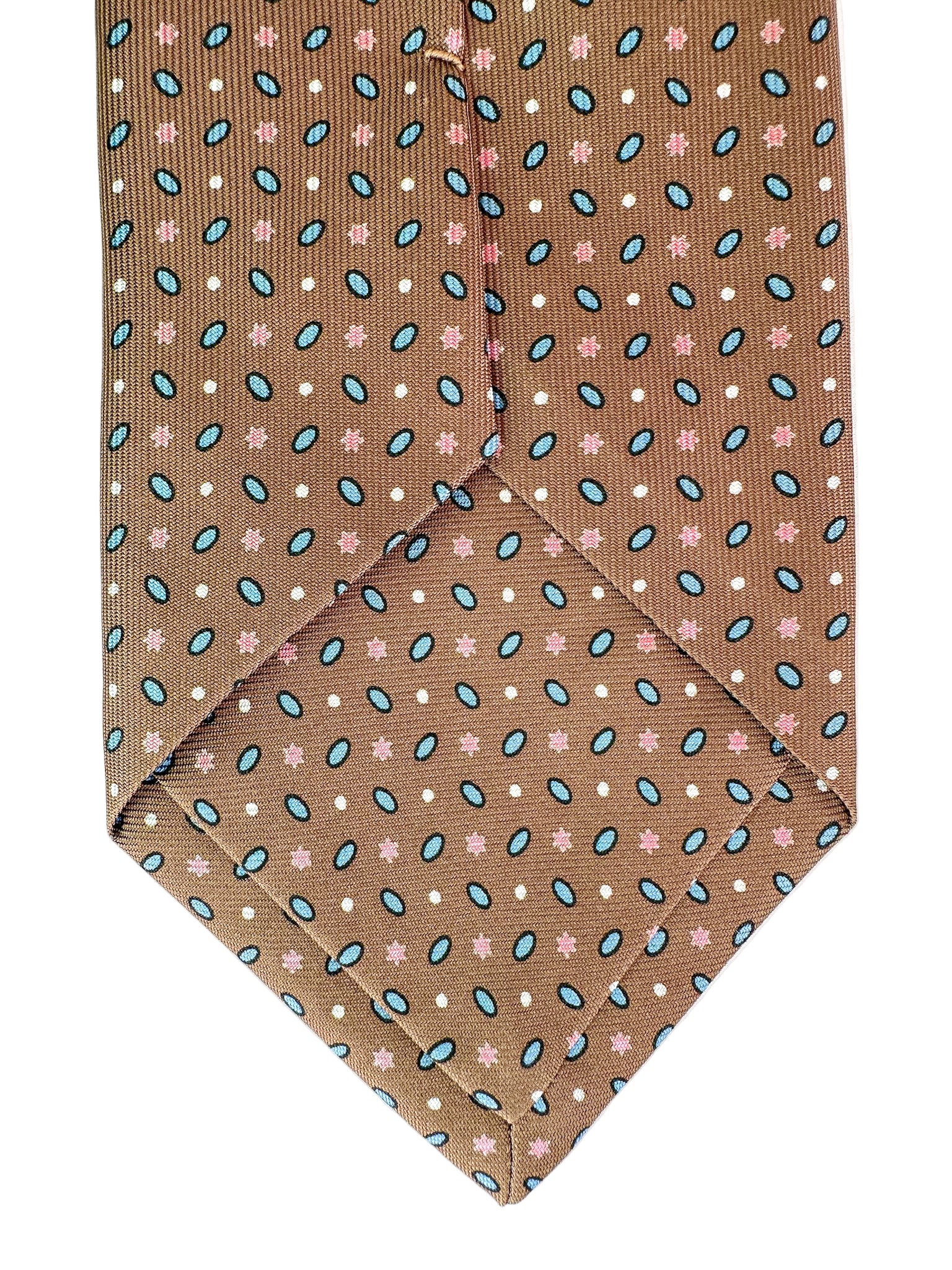 Drake's Brown Silk Tie Pink Floral Ovel Print