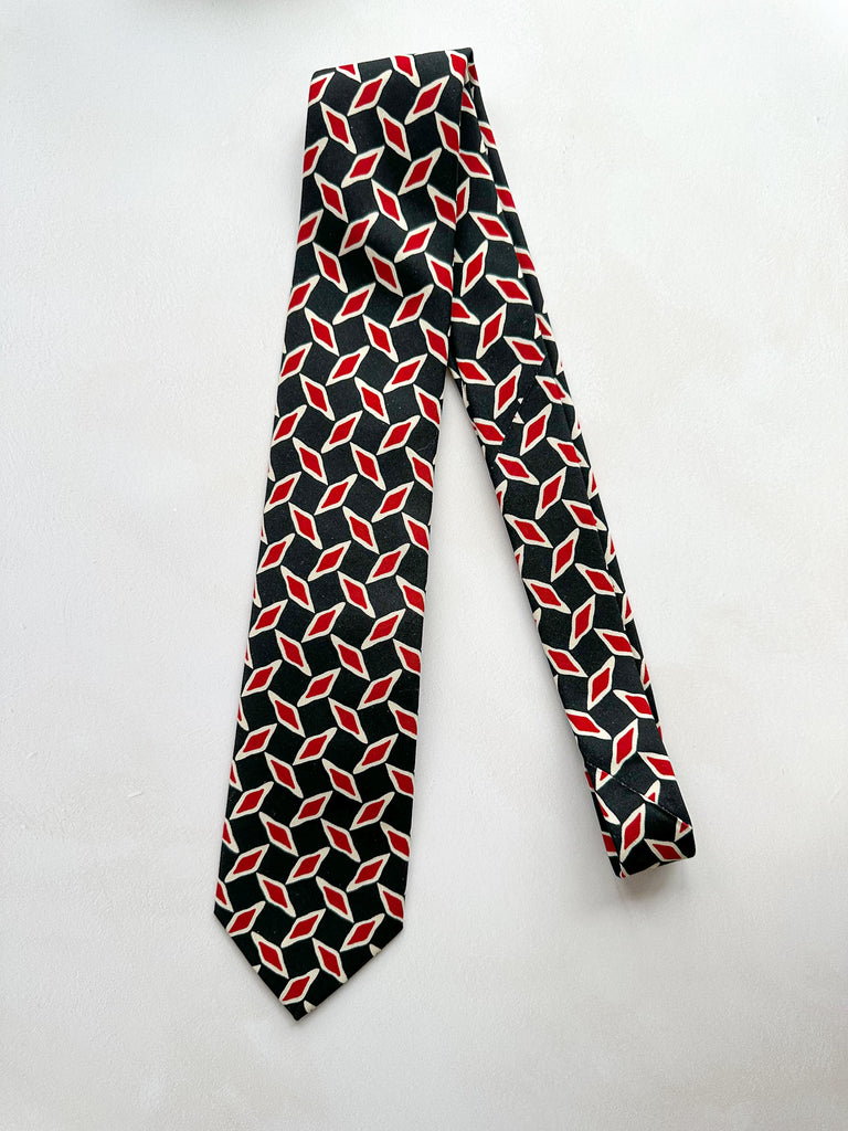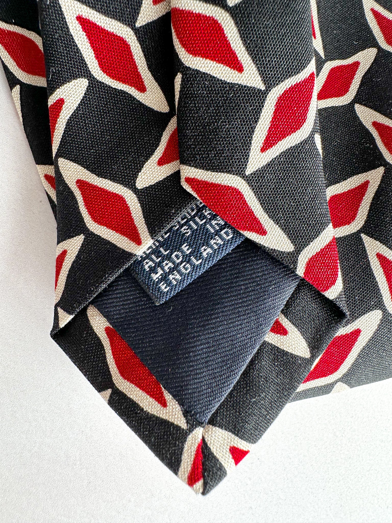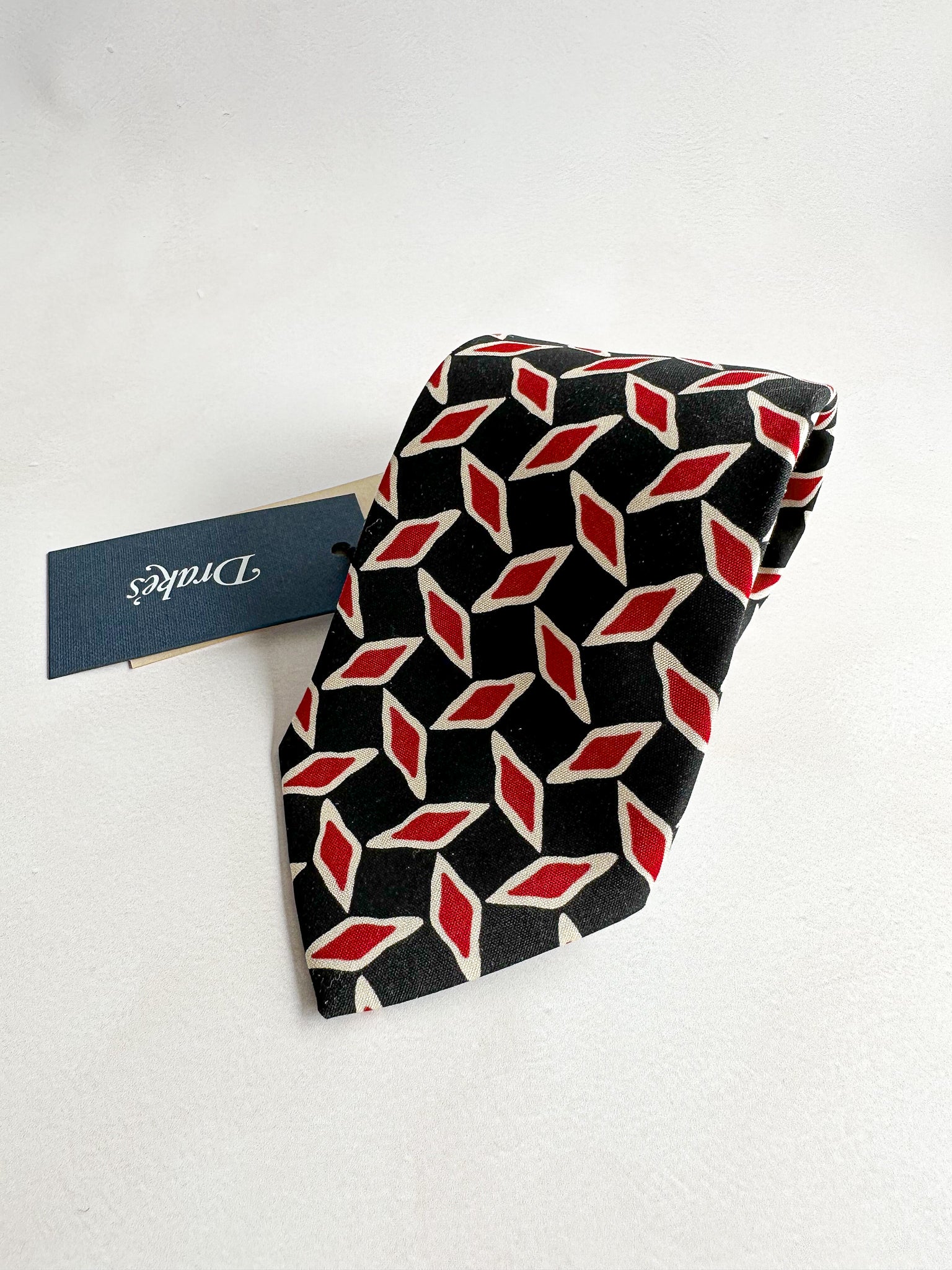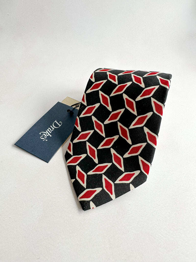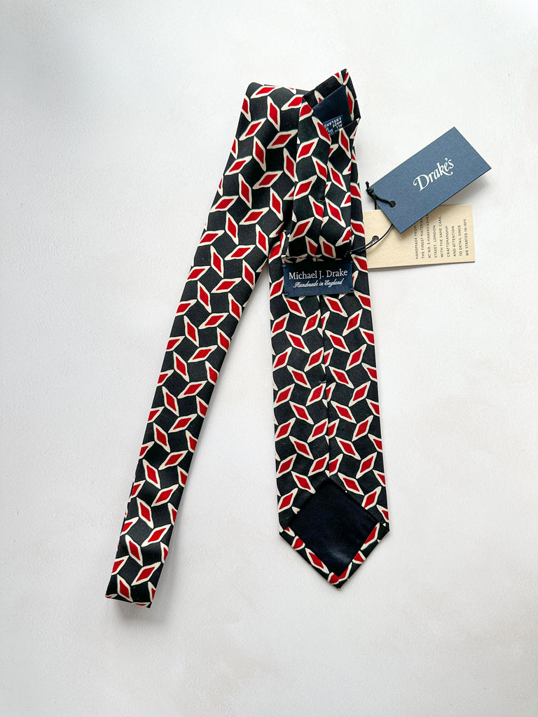 Drake's Michael J Drake Black Raseberry Diamond Print Silk Tie
