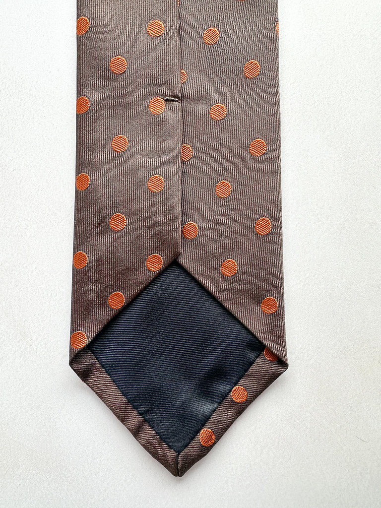Drake's Michael J Drake Brown Woven Orange Spot Silk Tie