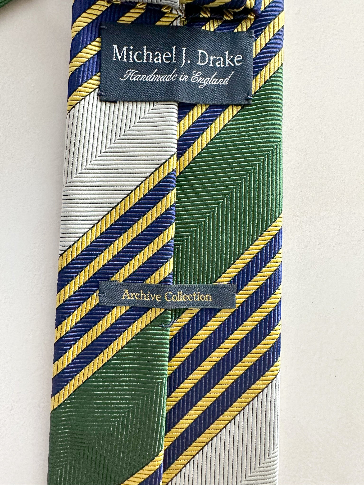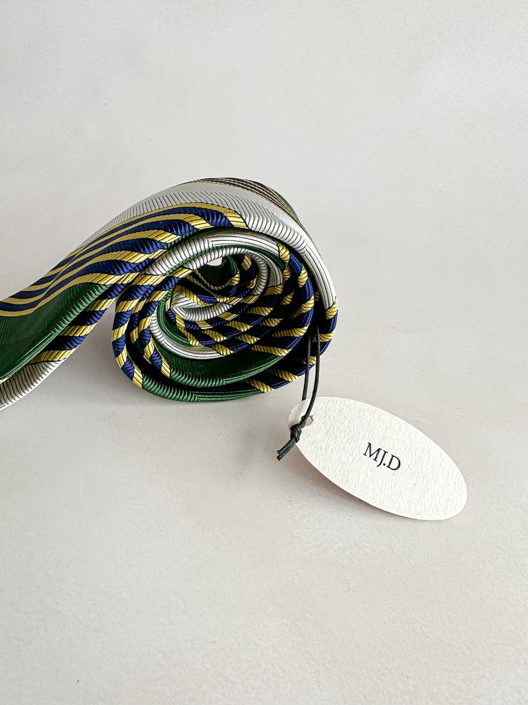 Make a bold statement with Drake's Michael J Drake Green Repp Striped Ivy League Tie. Its striking green stripes blend classic Ivy League style with a daring edge, perfect for those who want to stand out confidently. Crafted with precision, this tie adds a sharp, sophisticated touch to any outfit, elevating your look with fearless elegance.