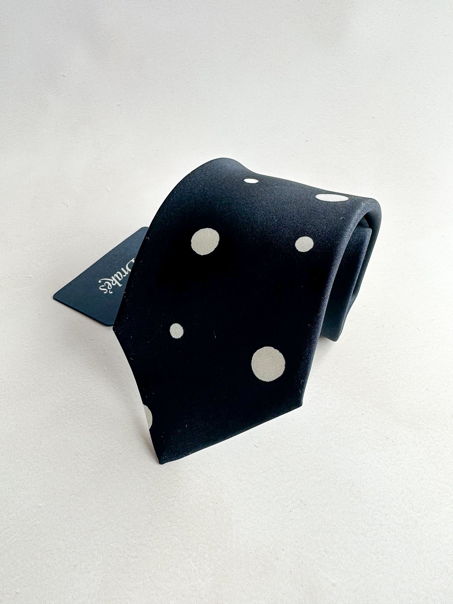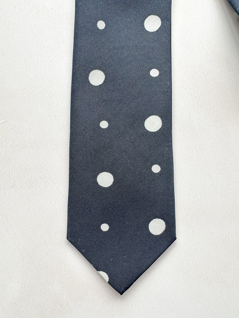 Elevate your style with Drake's Michael J Drake Navy Spotted Silk Tie, meticulously handmade in London. Crafted from soft silk, its hand-drawn spotted print adds a bold, artistic edge to any outfit. Perfect for those who dare to stand out with refined elegance.