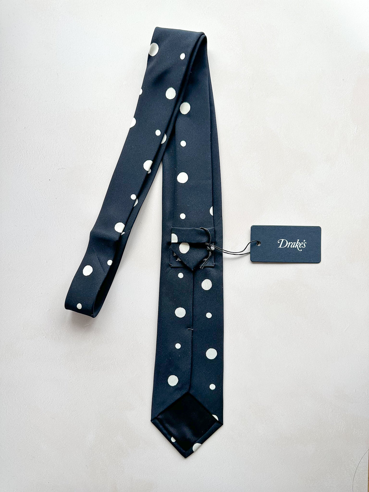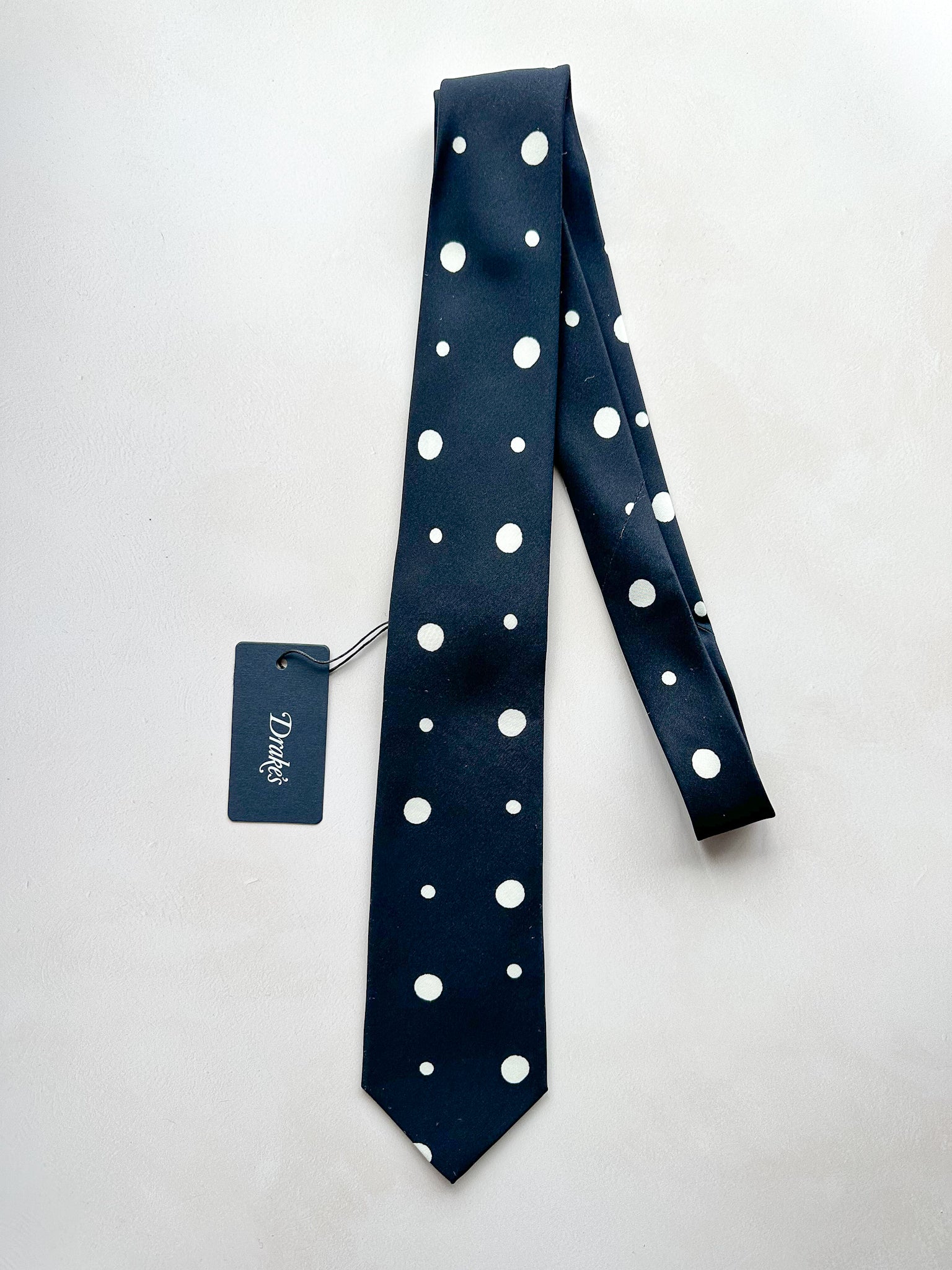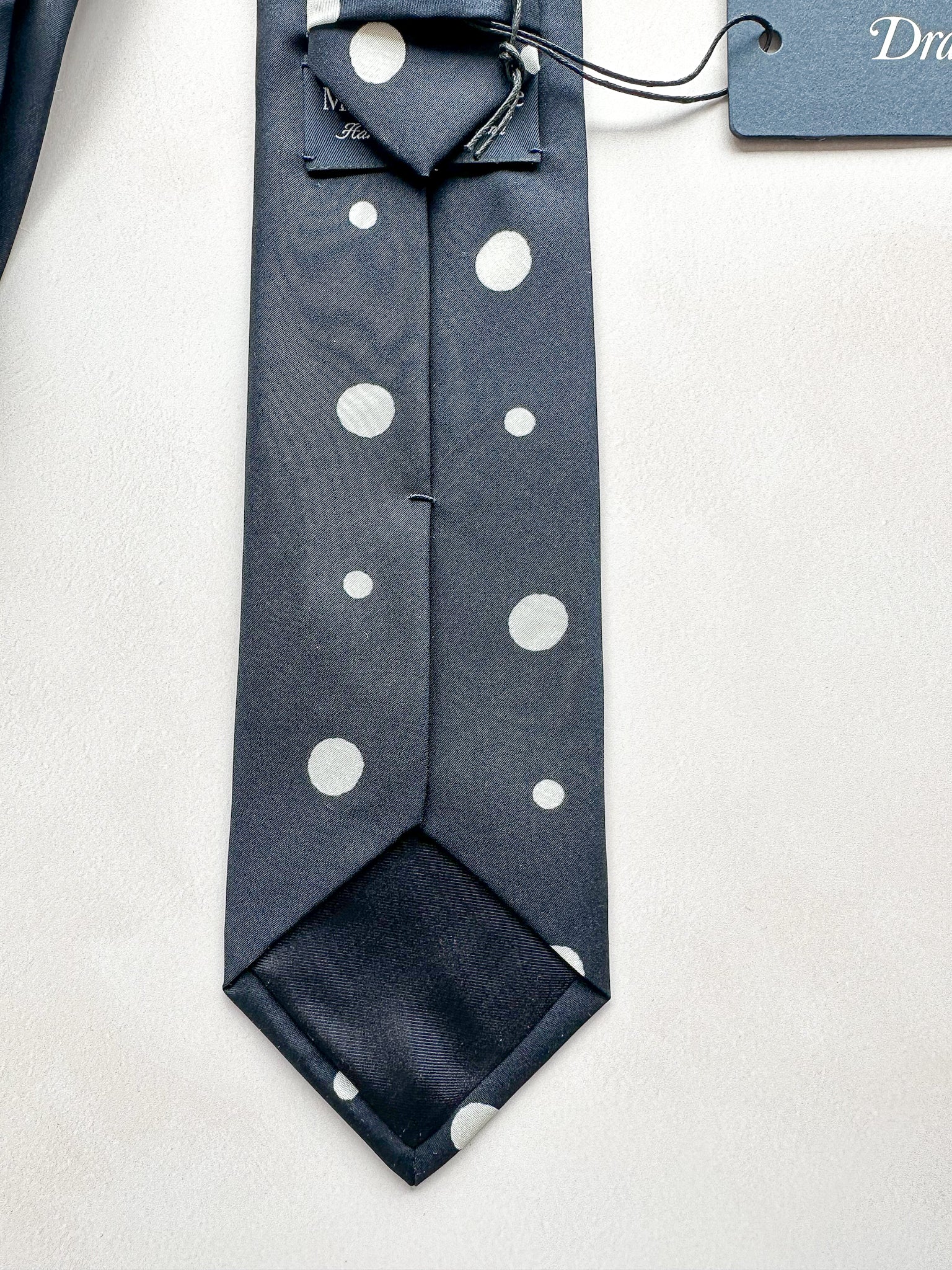 Drake's Michael J Drake Navy Spotted Silk Tie