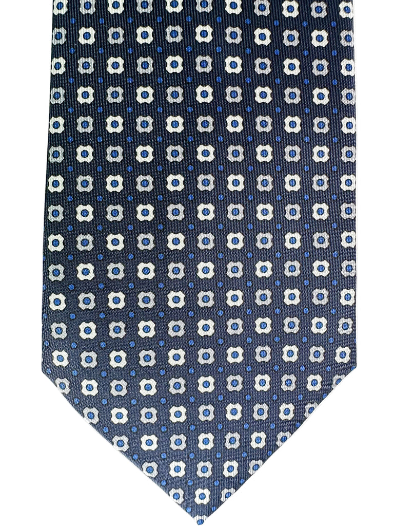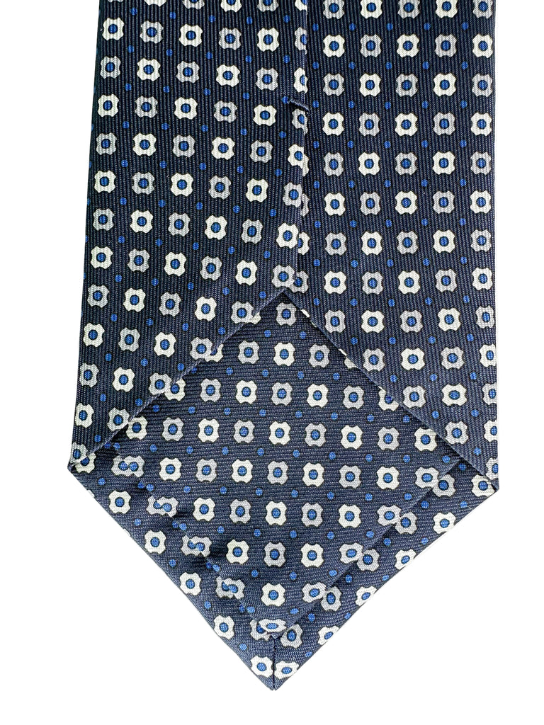 Drake's Navy Floral Silk Tie With Ecru Floral
