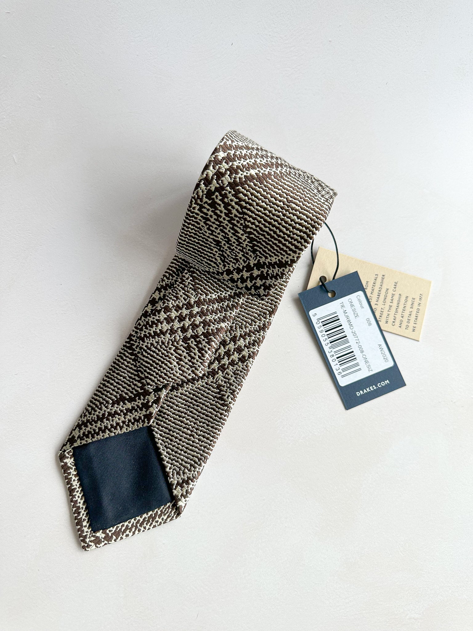 Drake's Brown Silk Checked Woven Tie