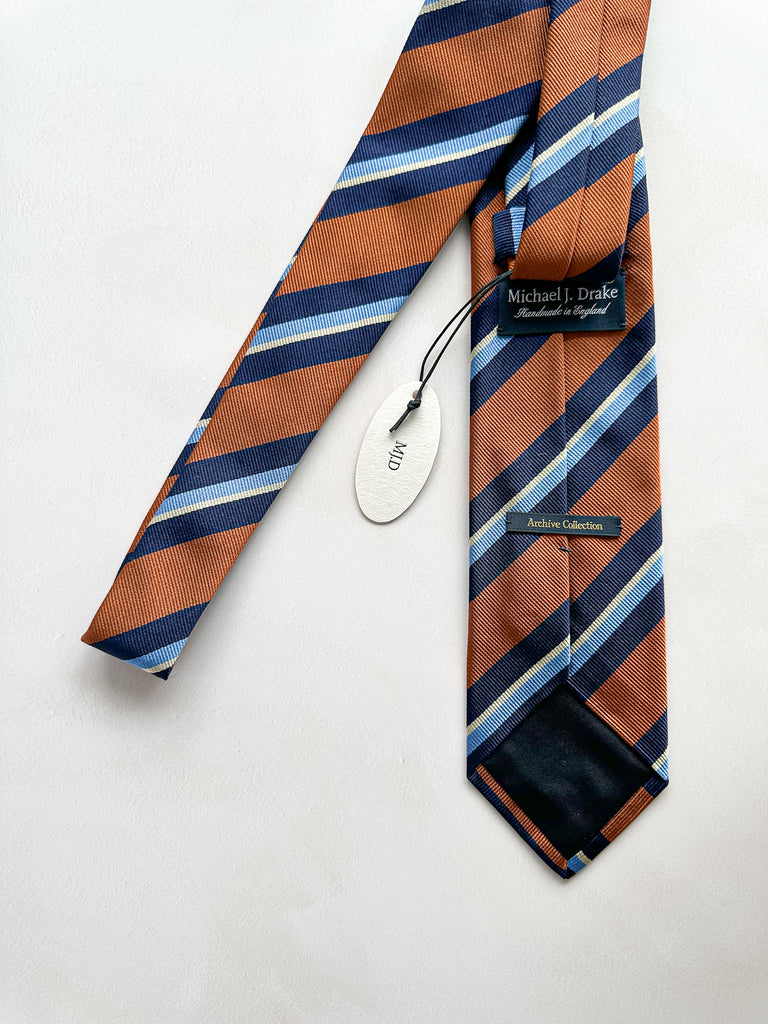 Drake's Michael J Drake Orange Ivy Leauge Striped Tie