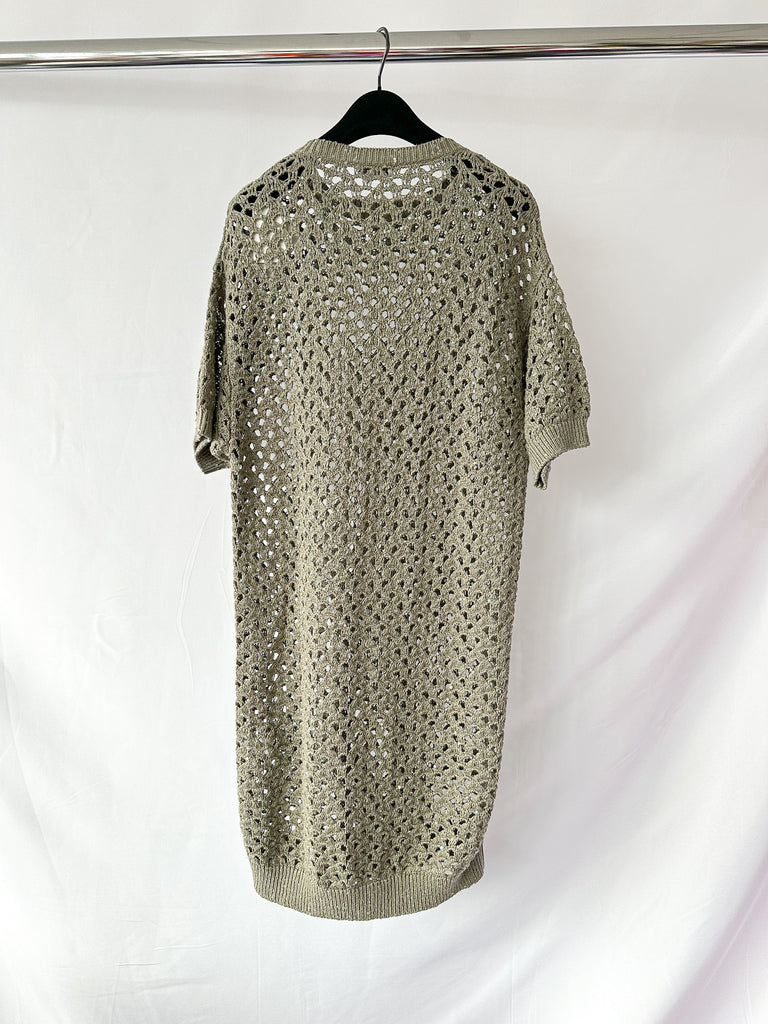 Brunello Cucinelli Green Crochet Open Knit Cotton Linen Silk Blend Dress