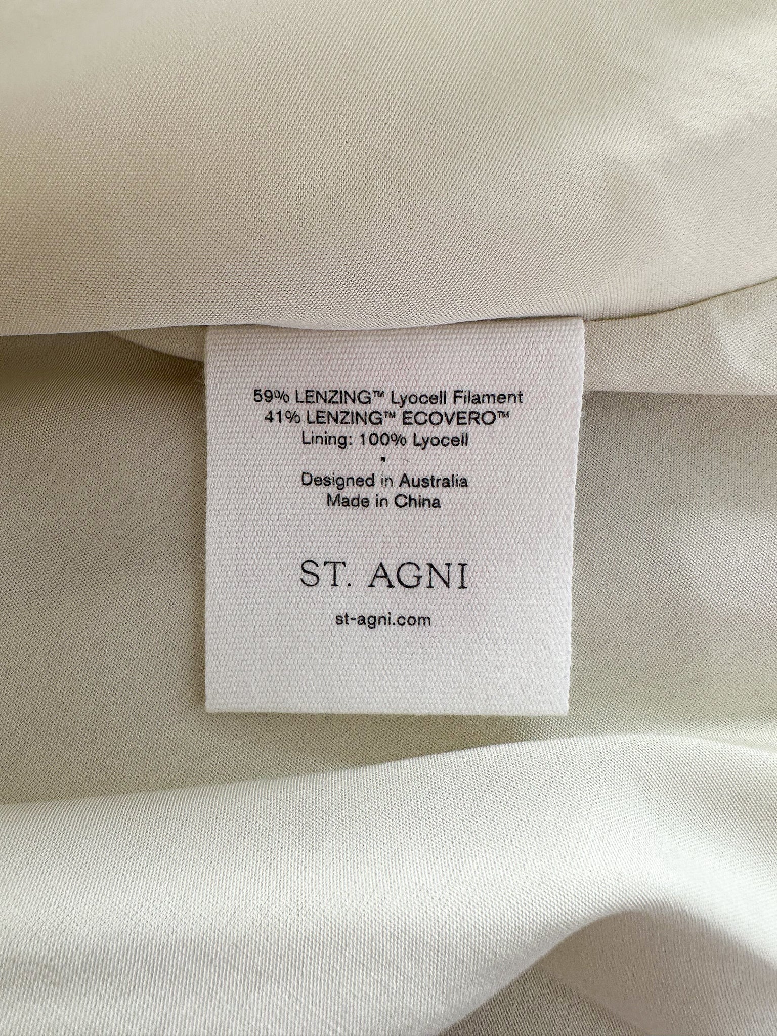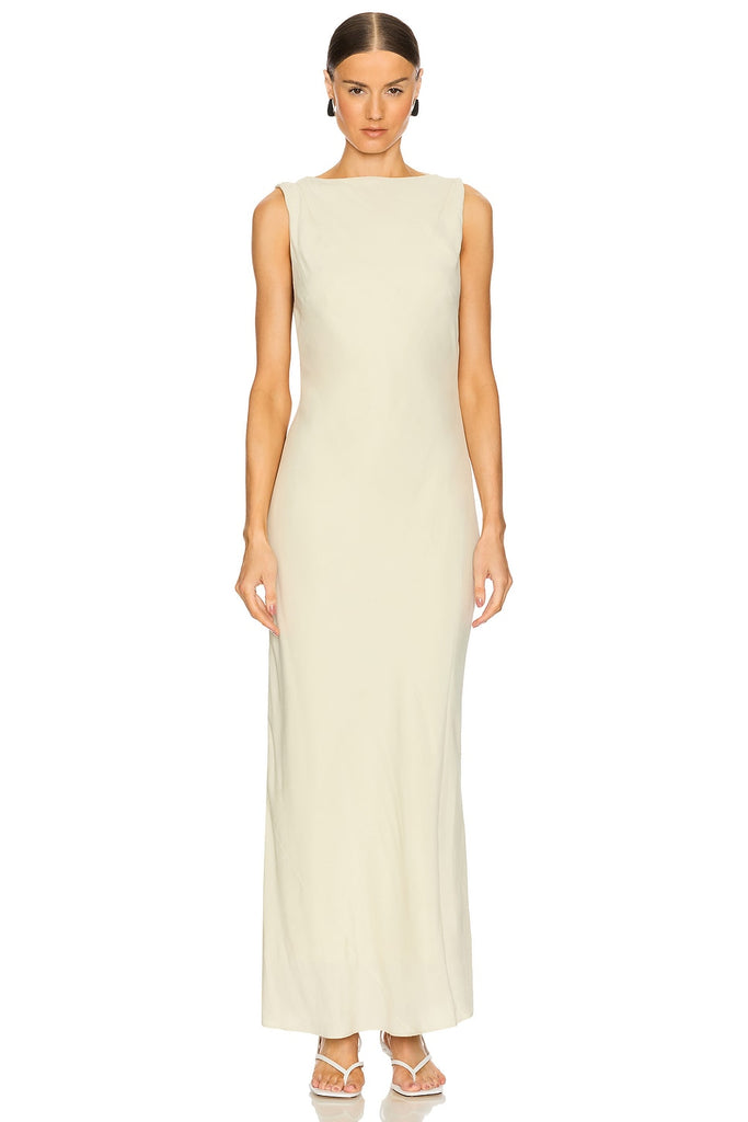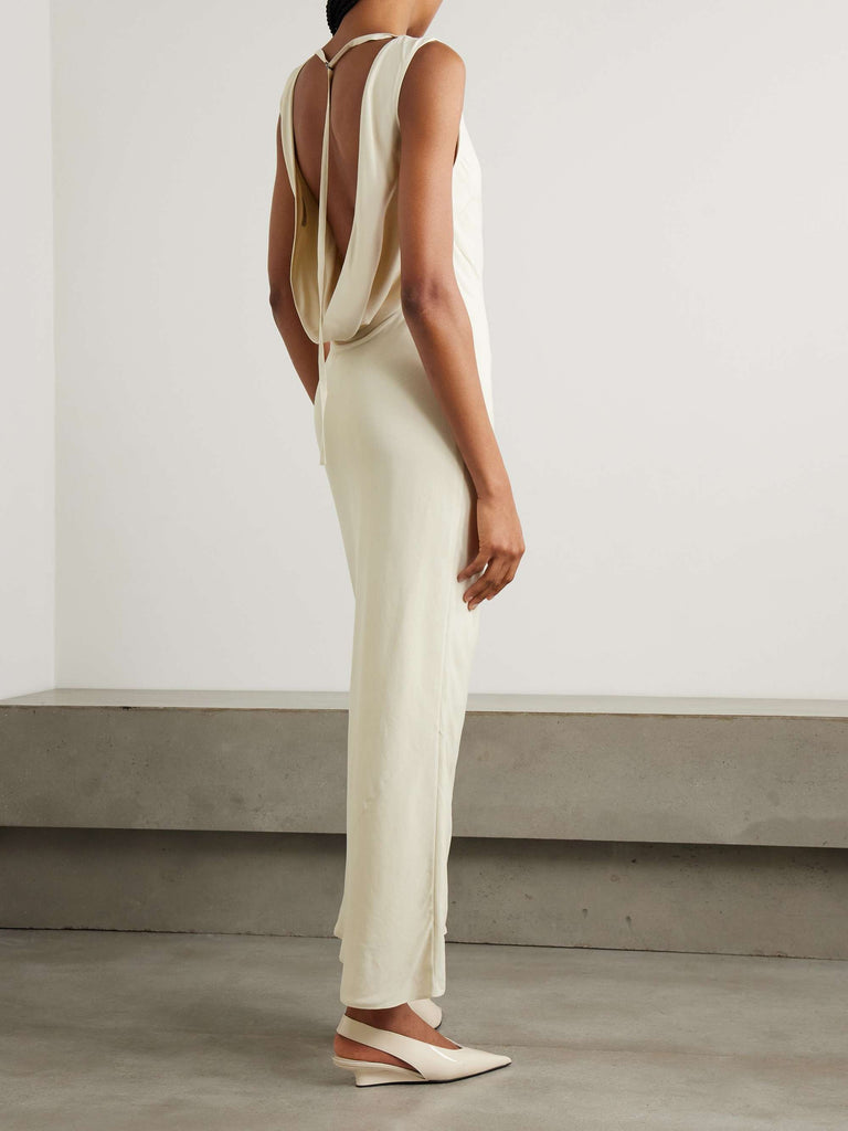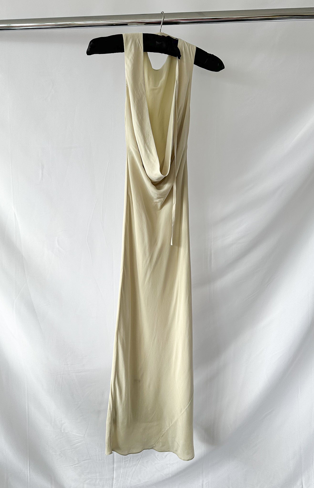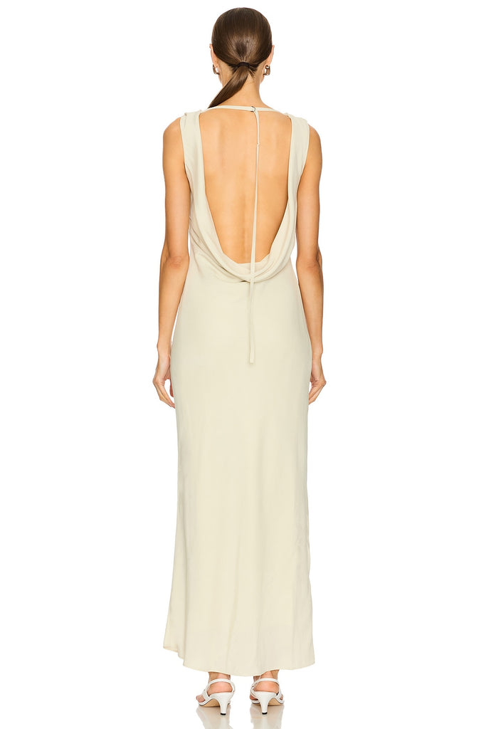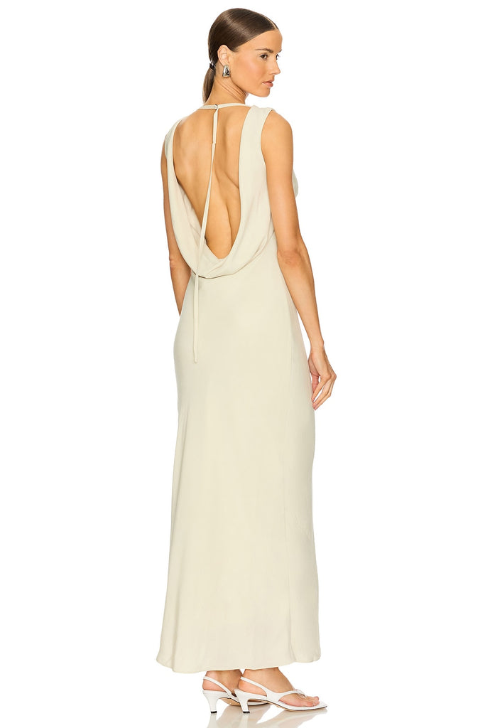 Elevate your wardrobe with the St Agni Dove Ivory Draped Cowl Dress, featuring a gracefully draped cowl neckline that adds understated elegance. Crafted in a soft dove white shade, this dress offers a refined silhouette perfect for sophisticated occasions. Its fluid design ensures both comfort and timeless style, making it an essential piece for those who value effortless luxury.