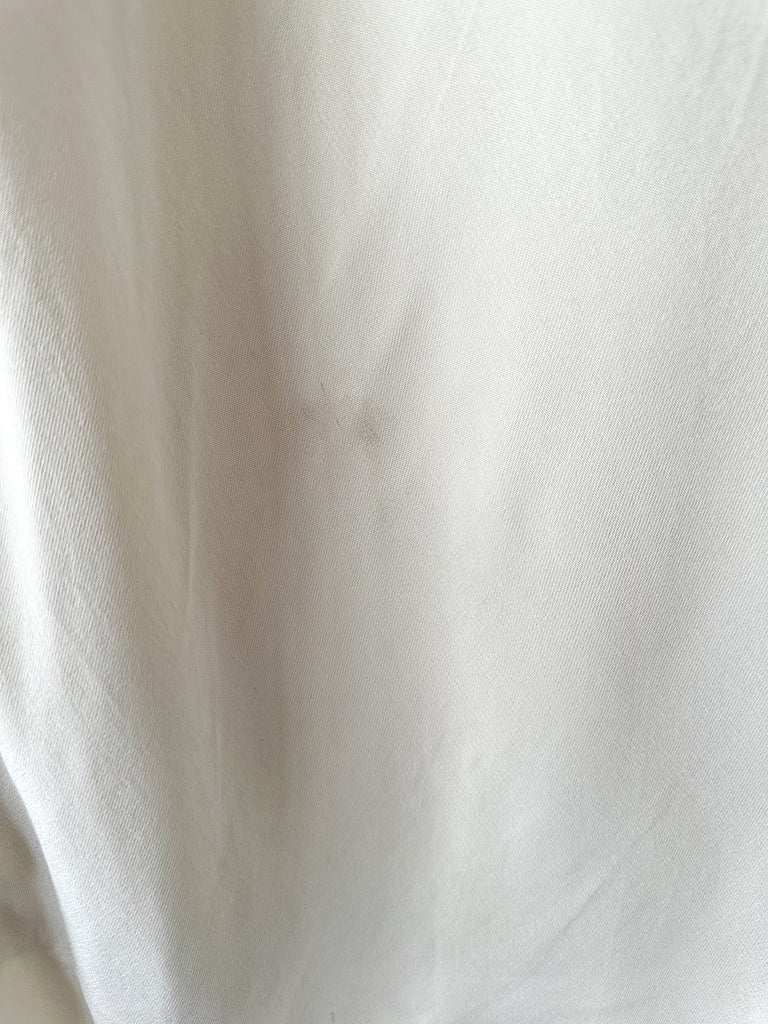 This dress contains some dirt marks from previous returns that can be cleaned. It has not been washed to preserve the original tags. The price has been adjusted accordingly. See last two photos to examine.