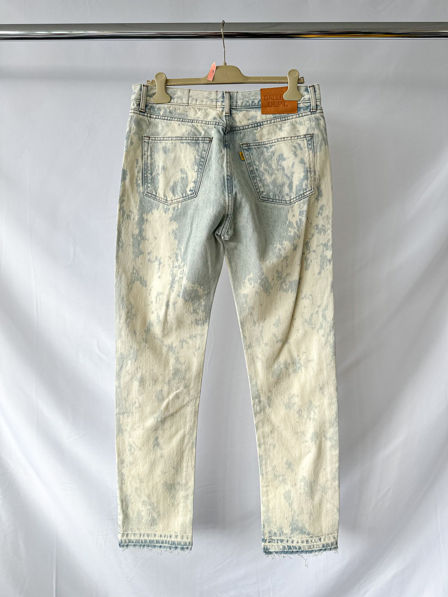 Gallery Dept Levi 5001 Surf Side Beached Reworked Vintage Jeans are truly one-of-a-kind, each pair uniquely transformed by artist Josue Thomas. These vintage Levi’s have been boldly reworked to capture a raw, surf-inspired aesthetic that stands out from the crowd. Perfect for those who dare to wear art and express individuality through authentic, hand-crafted denim.