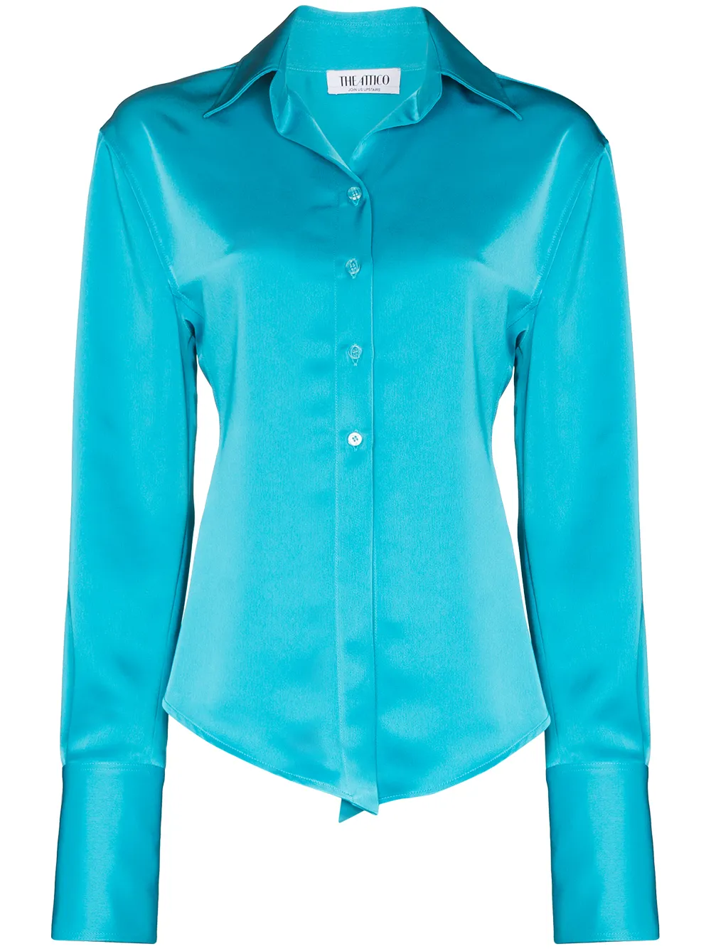 The Attico Lily Capri Blue Satin Long Sleeve Shirt