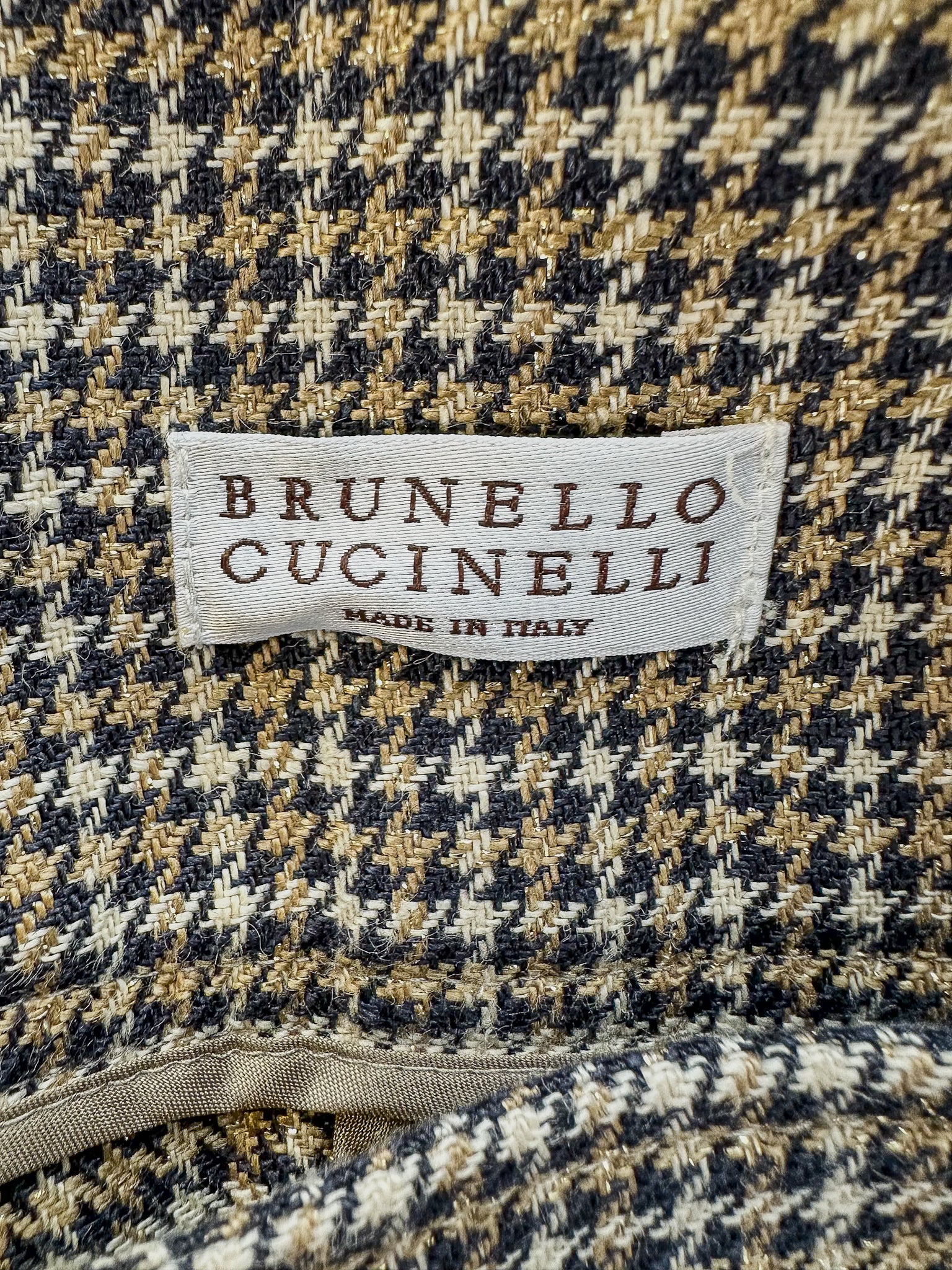 This skort from Brunello Cucinelli combines class and comfort for the ultimate daytime look. Made from lightweight linen, the chic style features a mini-checked pattern woven with metallic threads for a glistening finish.