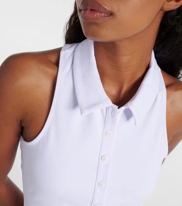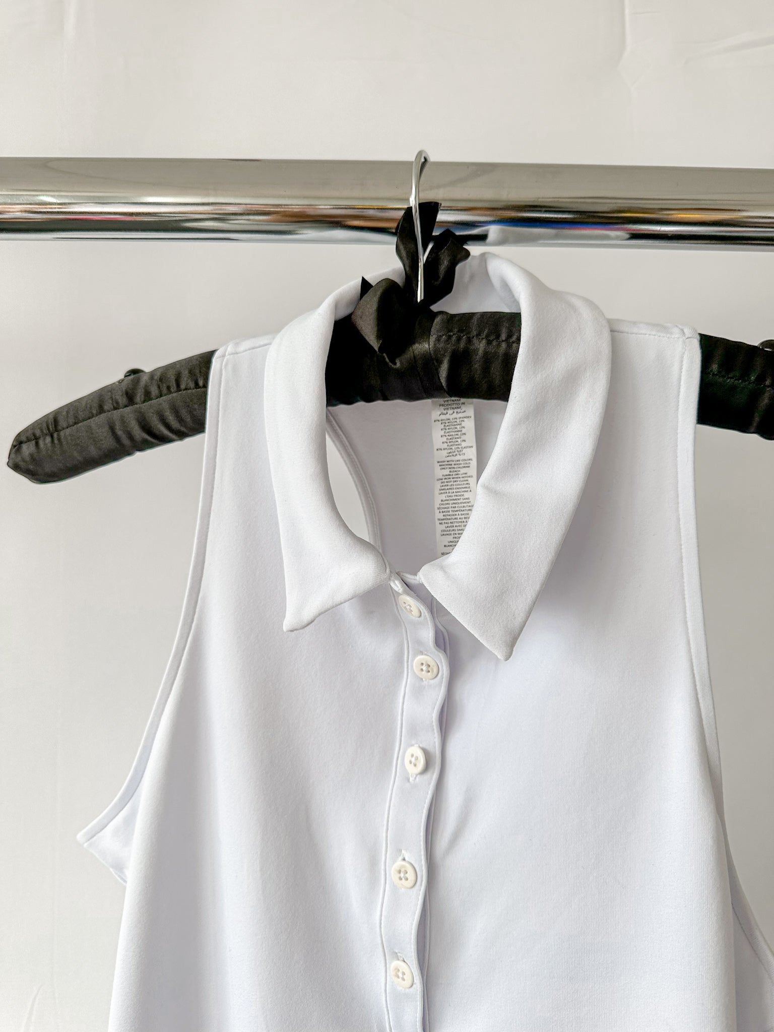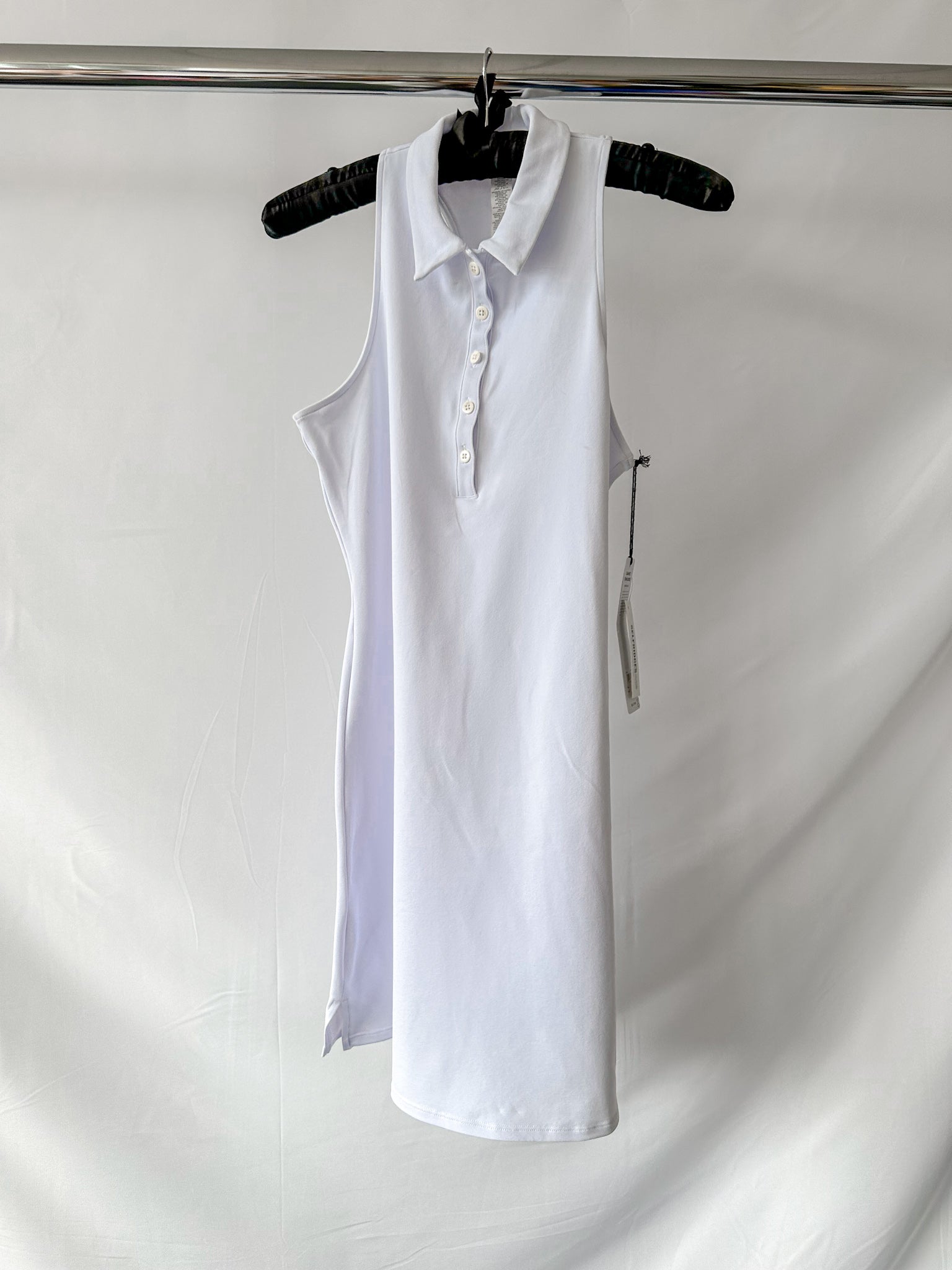 Alo Yoga Charmed White Logo Collared Tennis Dress