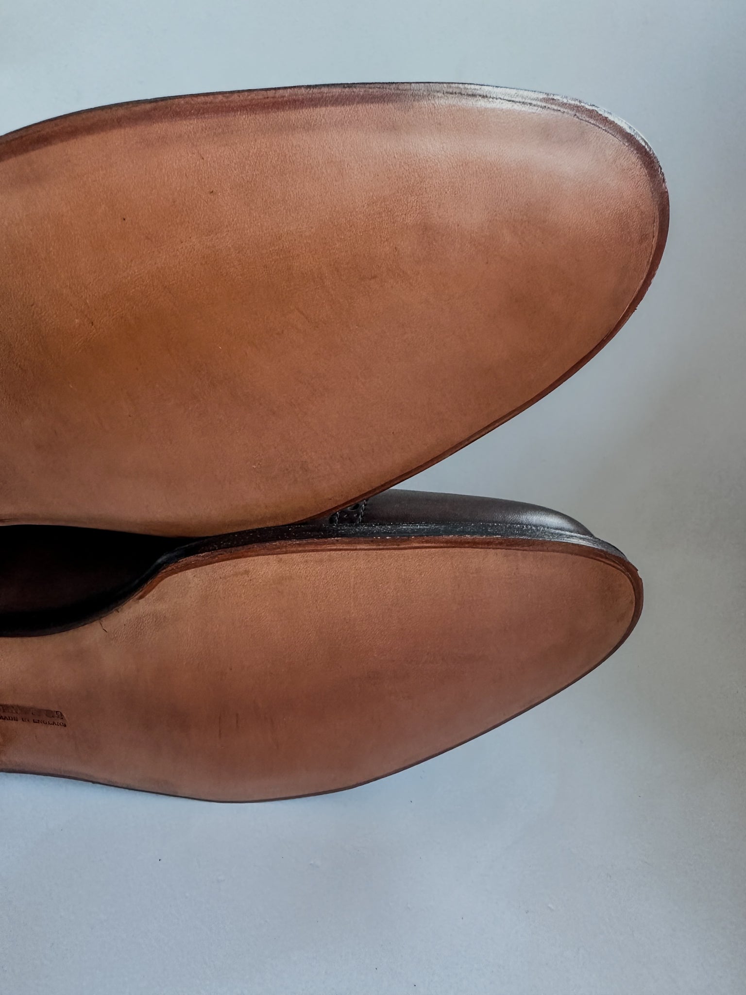 Crafted by master artisans in Northampton, these Crockett & Jones For Peal & Co oxfords exemplify British shoemaking heritage. The rich dark brown leather develops character with wear, while the classic Oxford silhouette offers timeless versatility. Hand-constructed with meticulous attention to detail, these shoes deliver the refined elegance and durability expected from one of England's most respected footwear makers. A distinguished choice for those who appreciate quality craftsmanship and enduring style.
