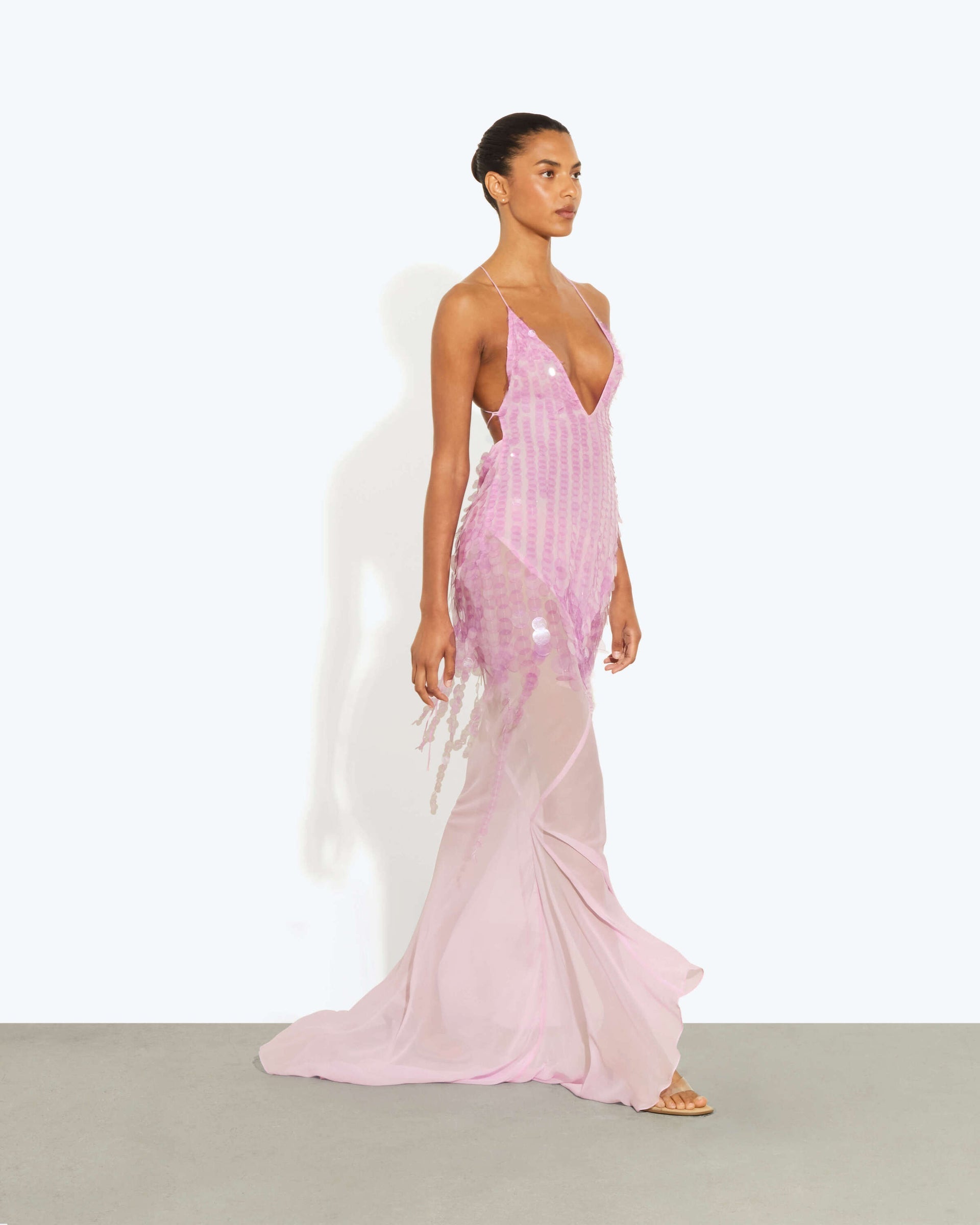 Rat and Boa Pink Hydra Sequin Drip Maxi Gown