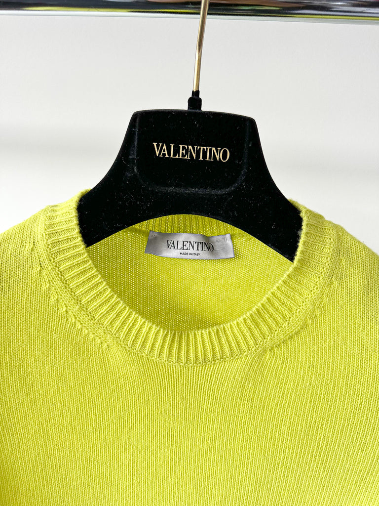 Valentino Garavani Lime Green Feather Trim Jumper