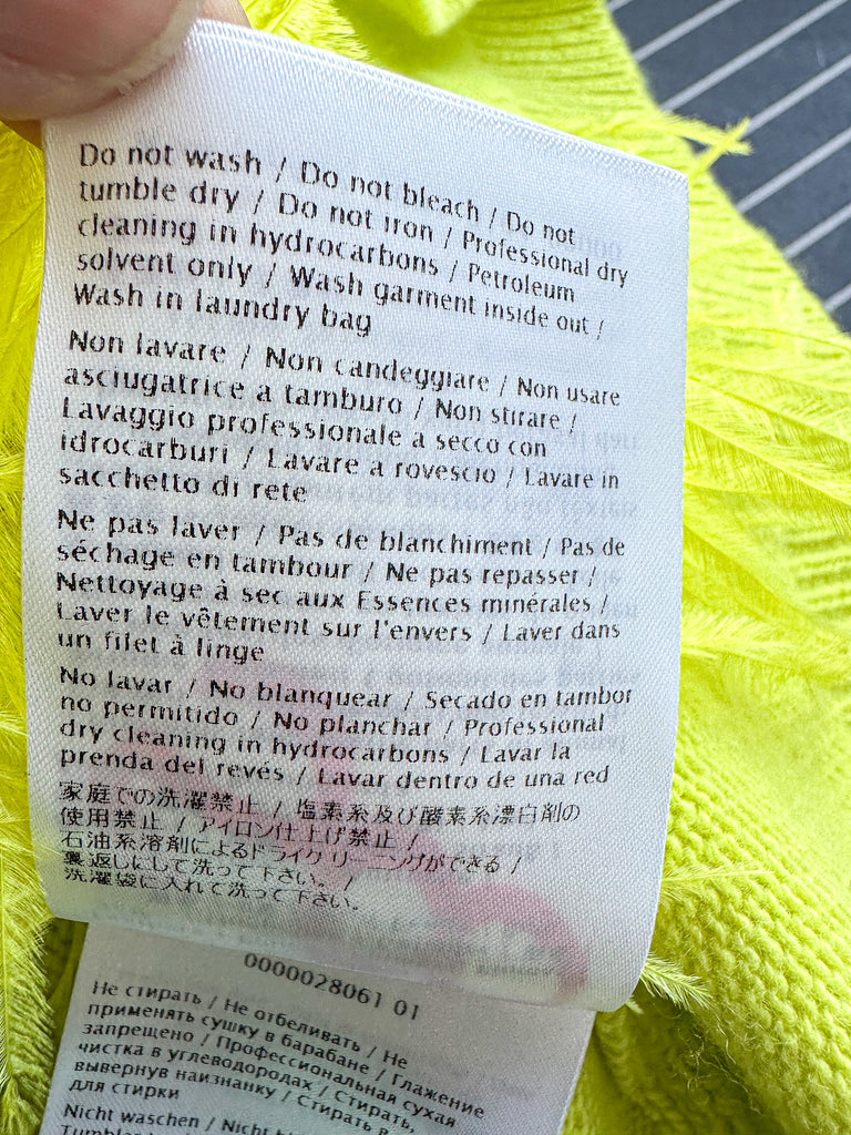 Unleash your wild side with the Valentino Garavani Lime Green Feather Trim Jumper. This vibrant and playful jumper features a unique feather trim, adding a touch of quirkiness to your wardrobe. Stand out from the crowd and make a statement with this eye-catching piece!