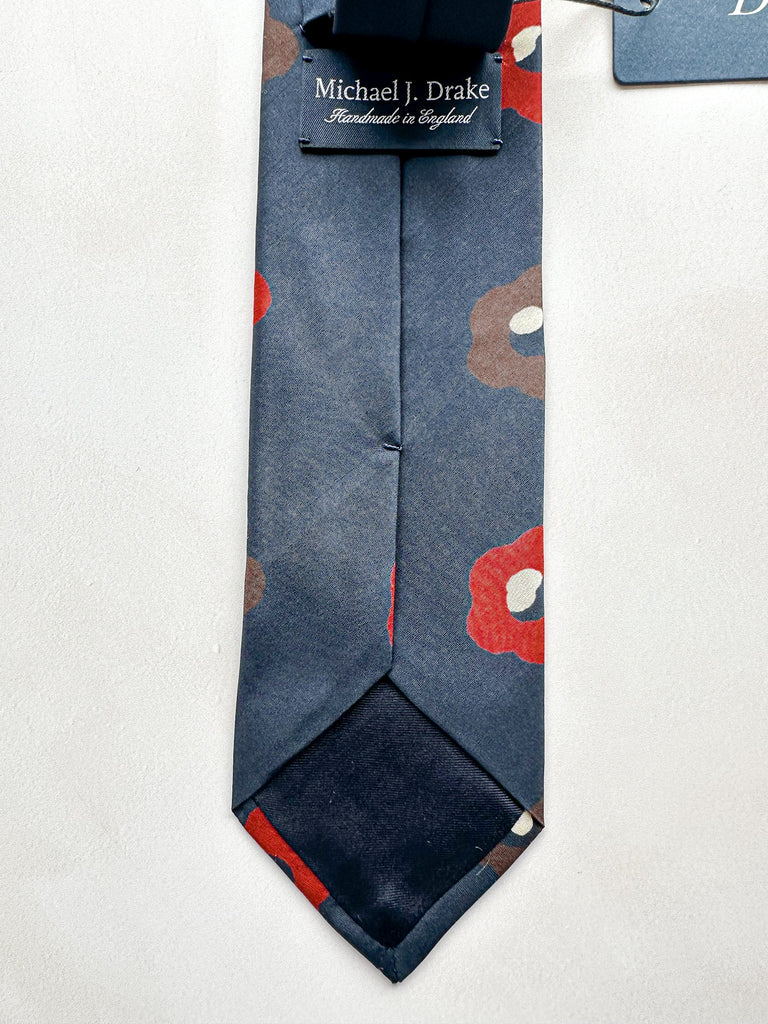 Drake's Michael J Drake Navy Silk Tie Vintage Floral Print