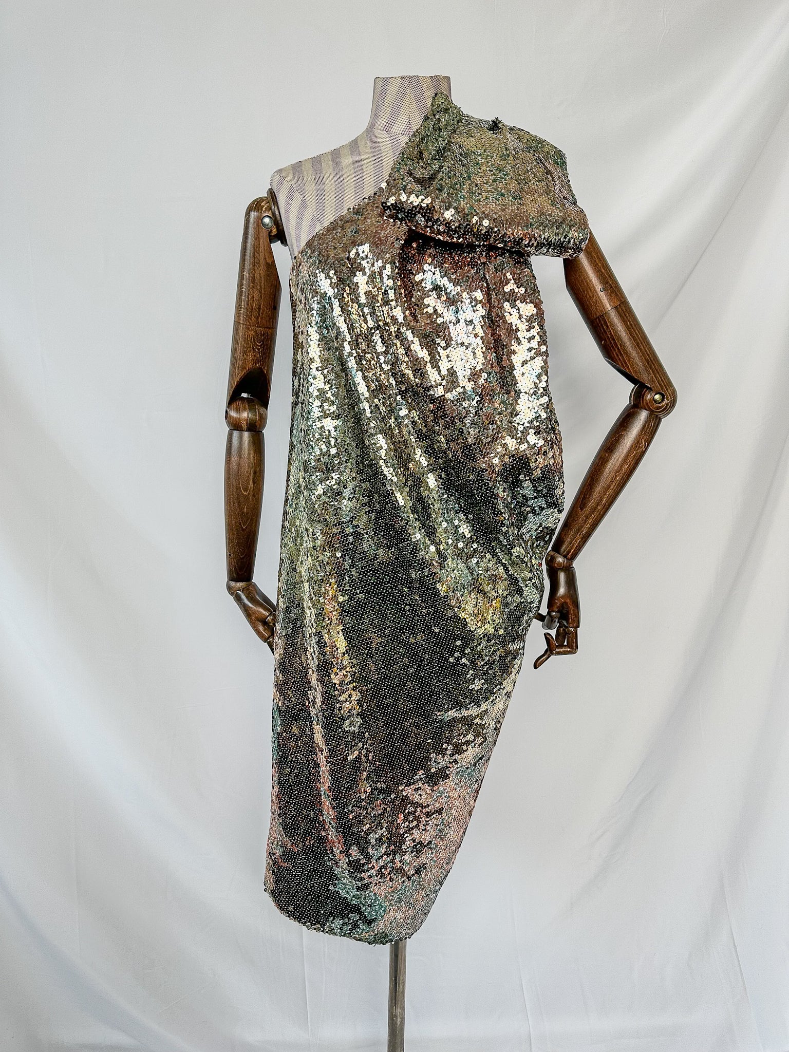 Halpern Sequinned One Shoulder Multicoloiur Party Dress