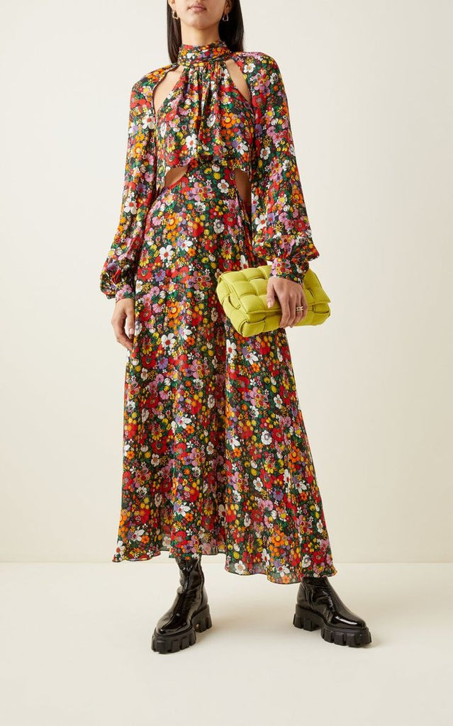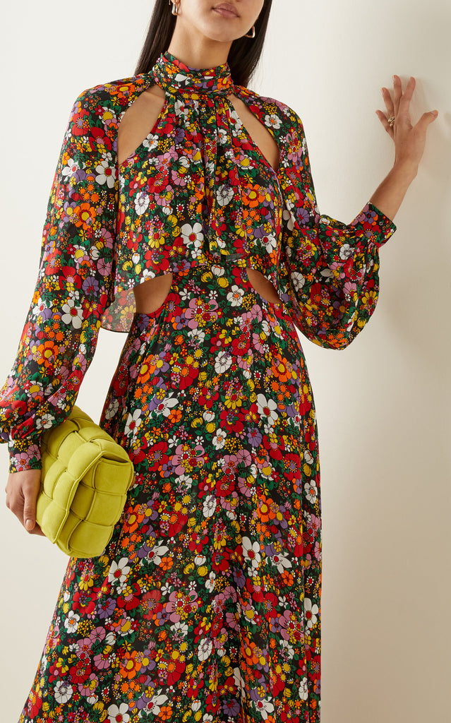 Christopher Kane Psych Floral Cut-Out Midi Dress