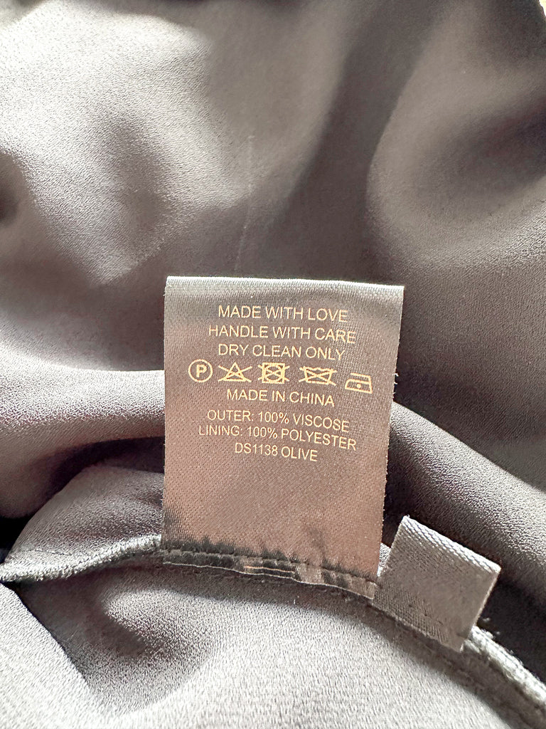Unleash your inner fashionista with our Olive Green Mini Dress! This playful piece features an eye-catching Art Deco floral print in black and green, with flirty cut-out details and feminine ruffles. The sleeveless design keeps you cool, while the rear tie fastening ensures a perfect fit. Hitting at thigh-length, this dress is ready to dance the night away!
