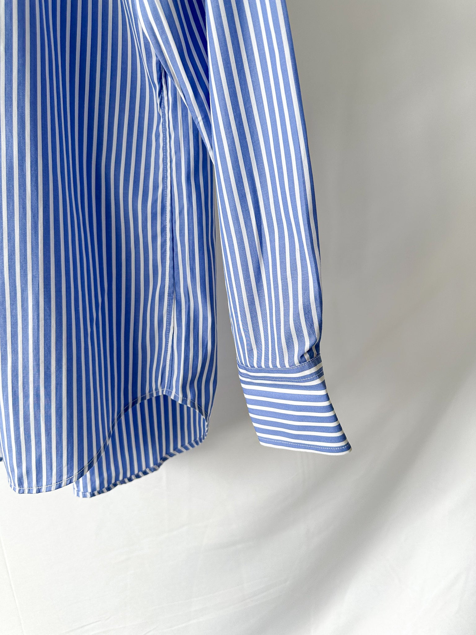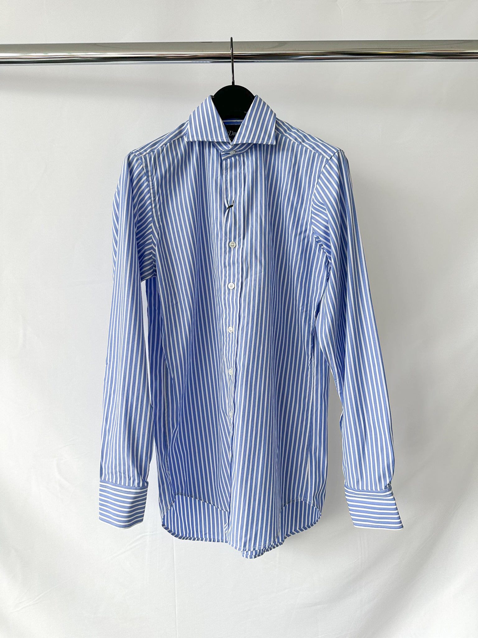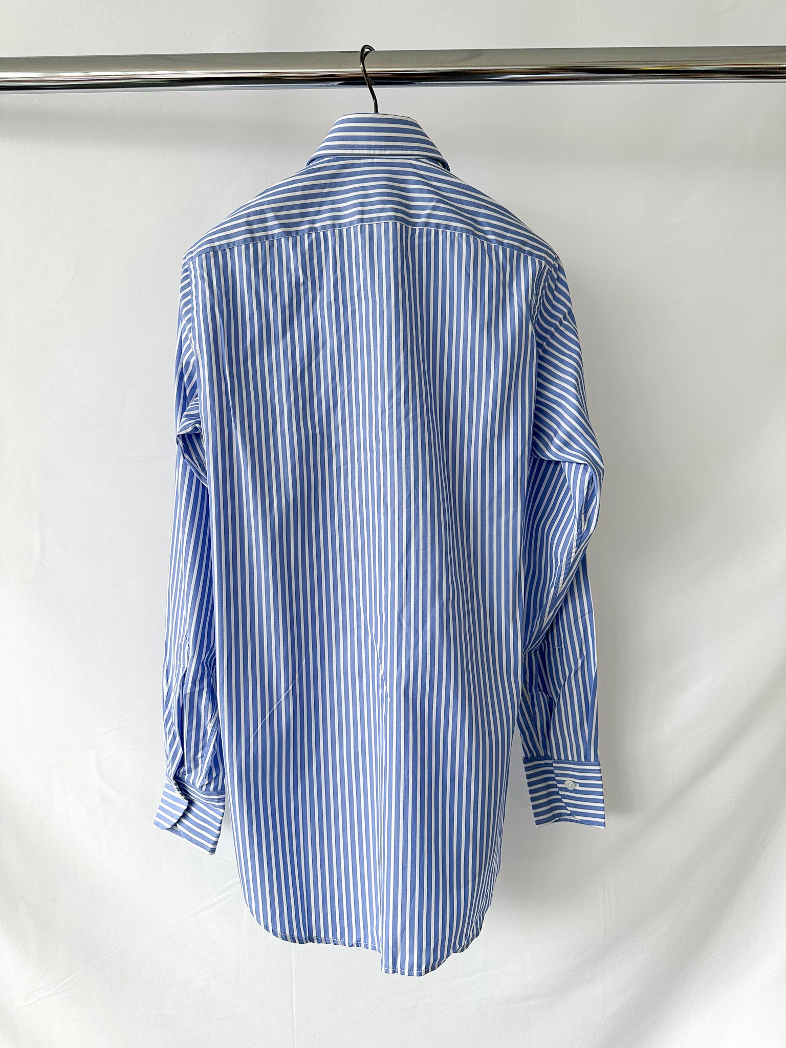 Crafted in England from fine cotton poplin, Drake's Easyday Blue White Striped Shirt offers timeless style and exceptional comfort. Its classic blue and white stripes bring a fresh, versatile look perfect for both casual and smart occasions. Lightweight and breathable, this shirt ensures all-day ease while elevating your wardrobe with effortless sophistication.