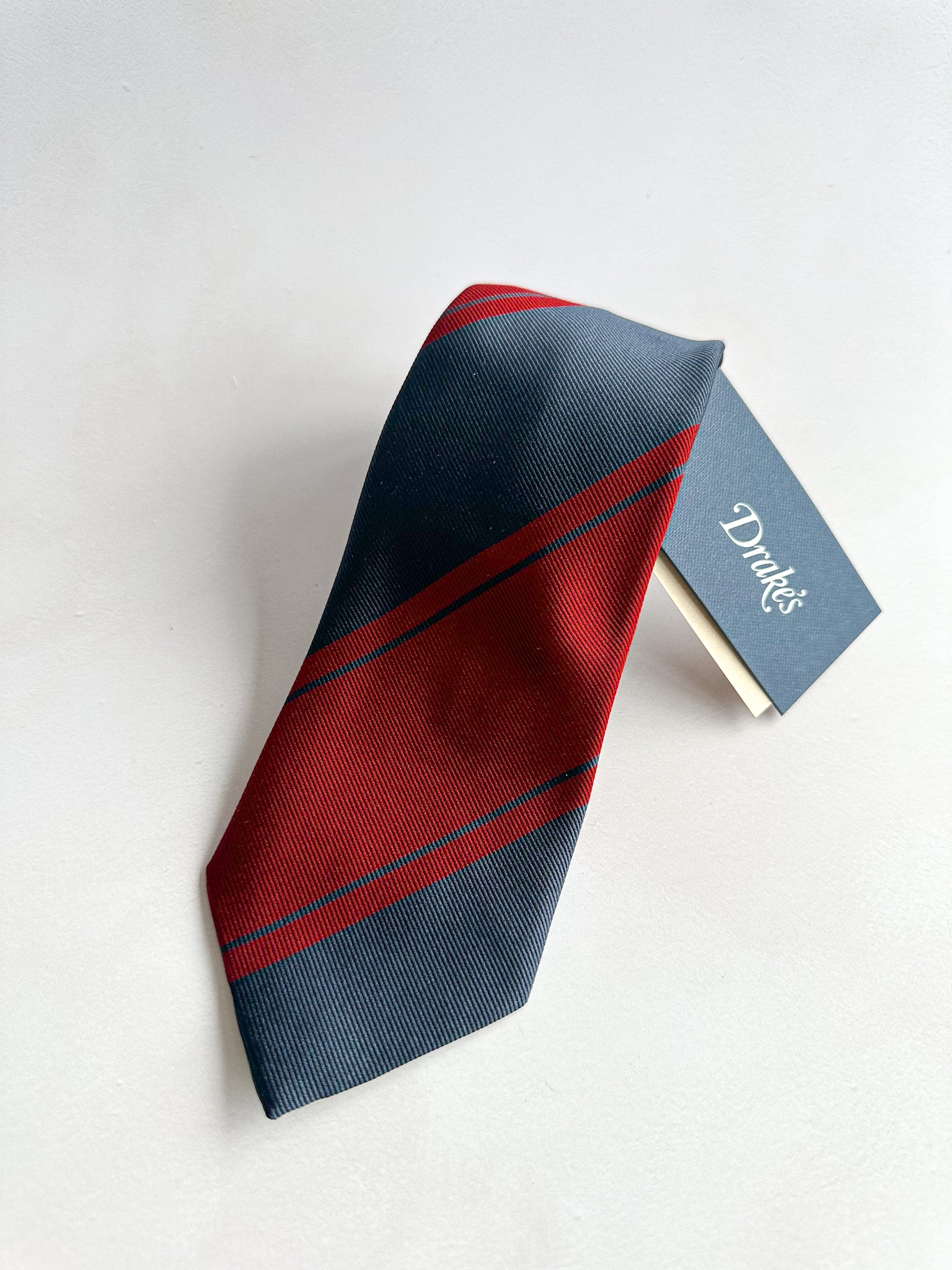 Drake's Michael J Drake Red Navy Striped Ivy League Tie