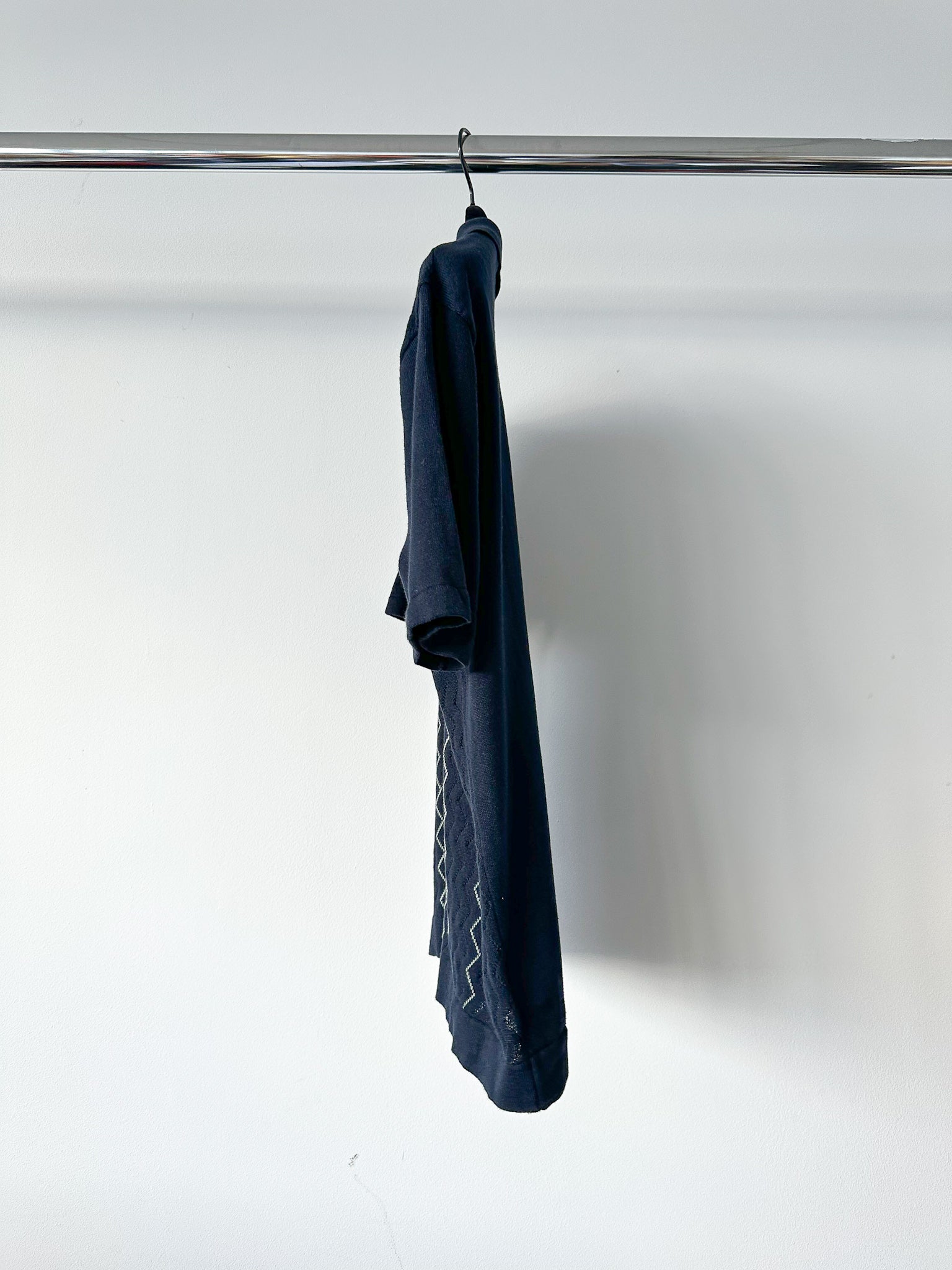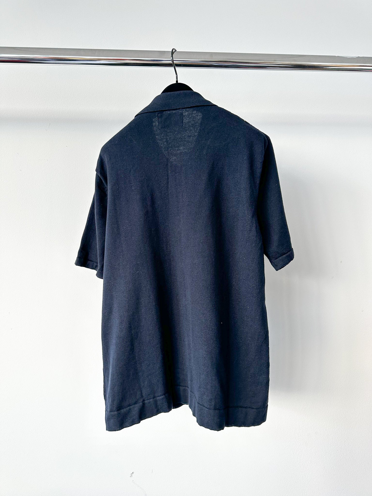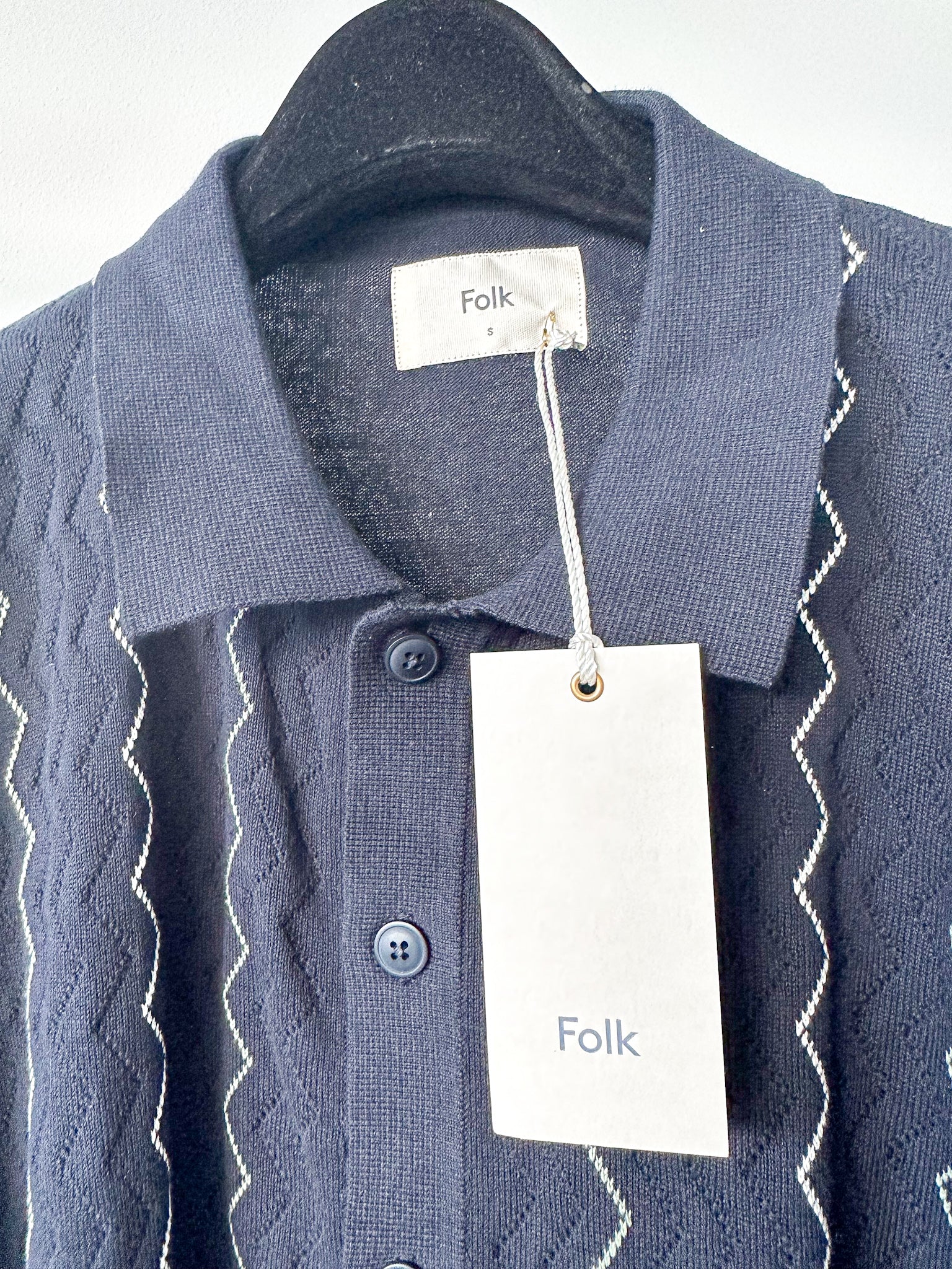 Indulge in effortless style with the Folk Mark Knitted Button Up Polo Shirt. Crafted in a classic navy blue, this shirt features a unique knitted fabric and a button-up design, combining comfort and sophistication. Elevate your wardrobe with this versatile and timeless piece.