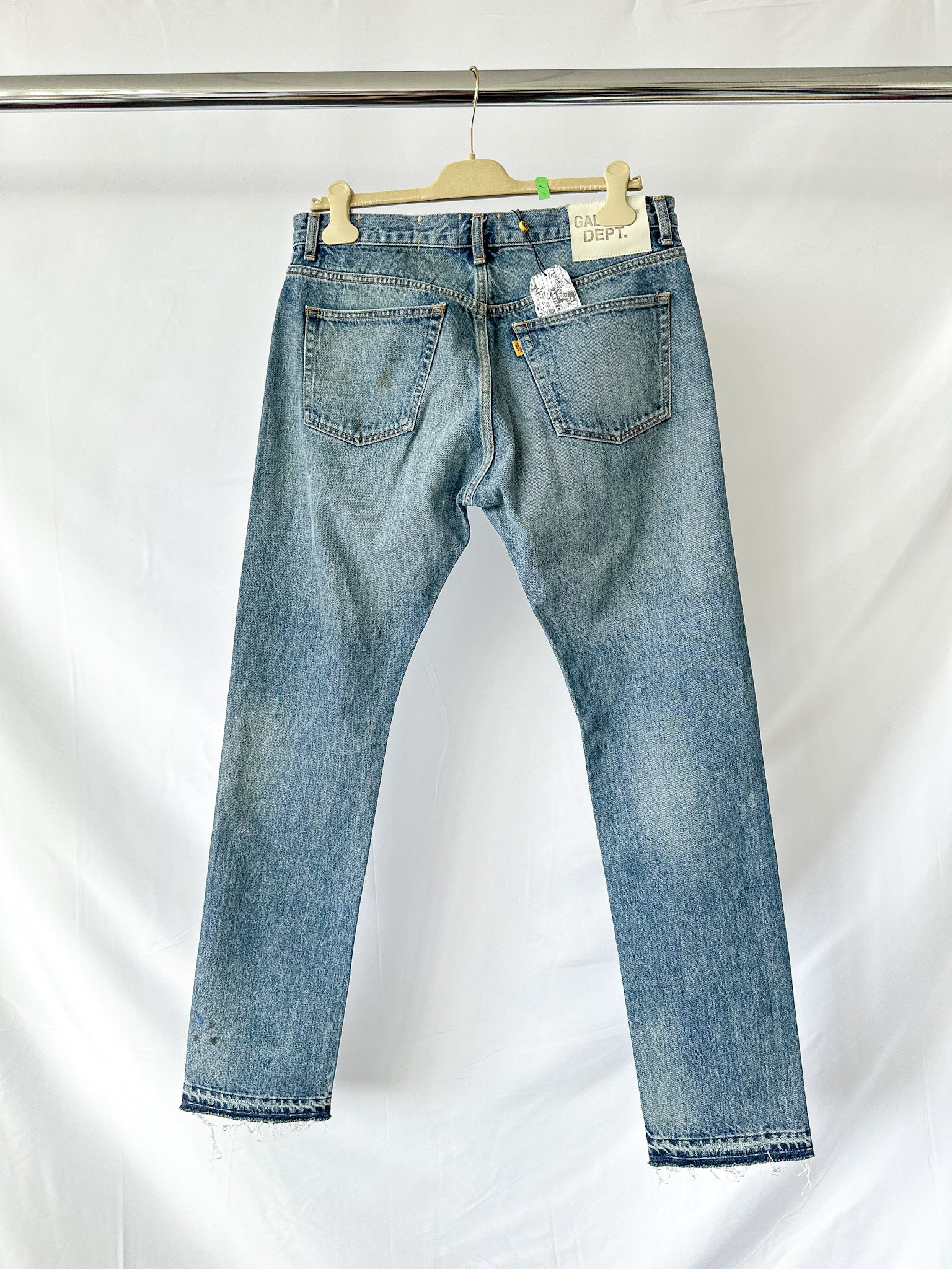 Step into bold individuality with the Gallery Dept Levi 5001 Reworked Paint Selvedge Jeans. Expertly reworked in Japan from vintage Levi 5001s, each pair boasts unique paint details and authentic selvedge denim, making every pair truly one of a kind. Embrace a daring style that stands out with craftsmanship and originality.