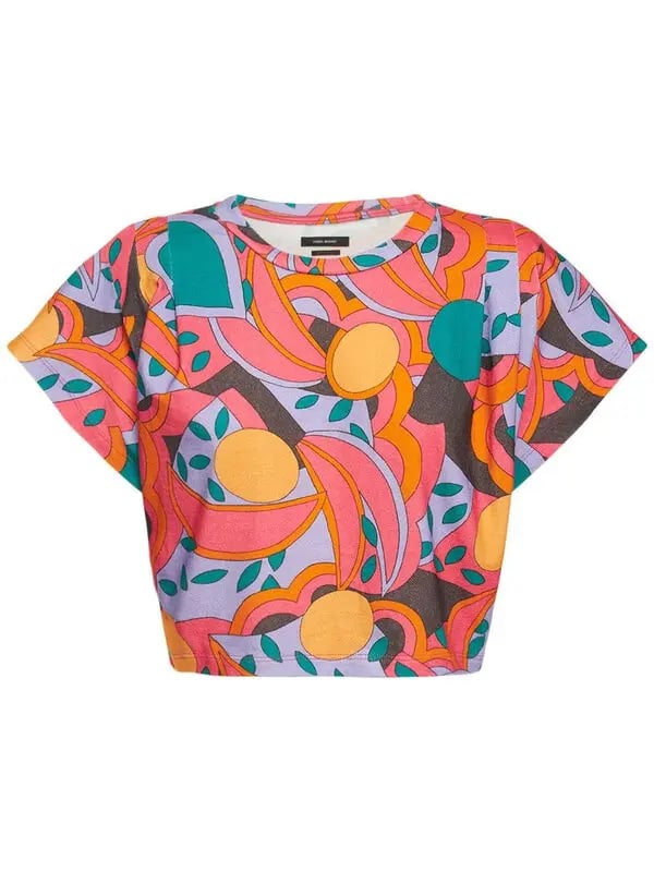 Isabel Marant Zinalia Multicolour Graphic Abstract Print Cotton Crop Top