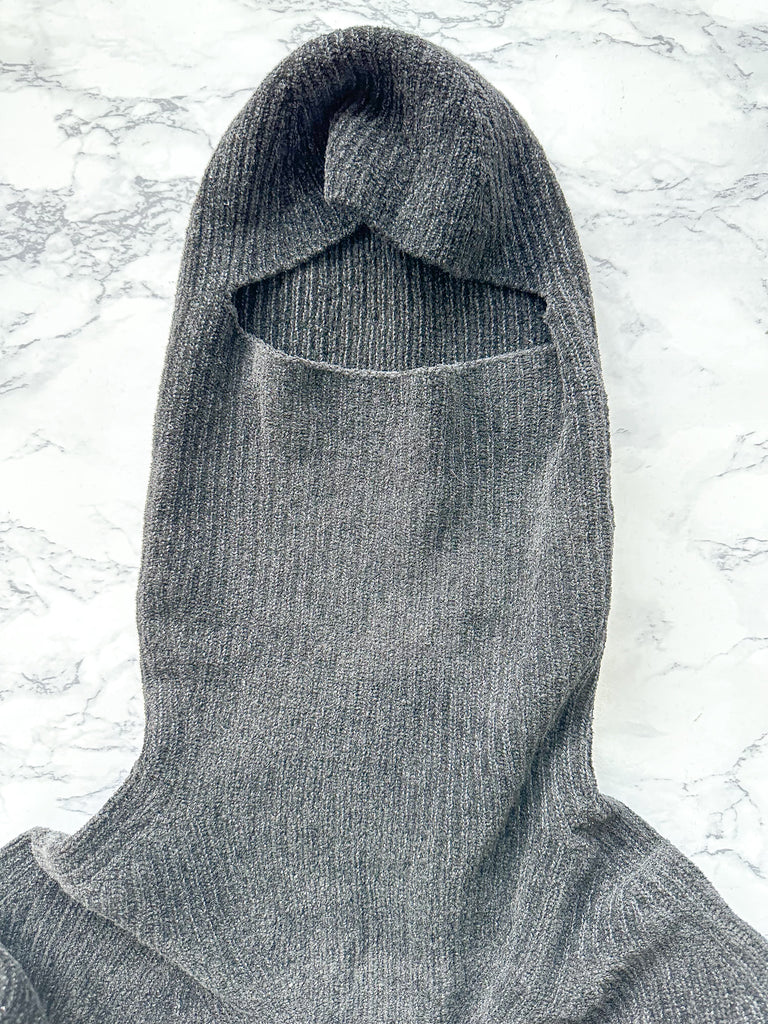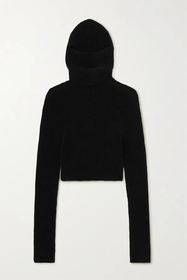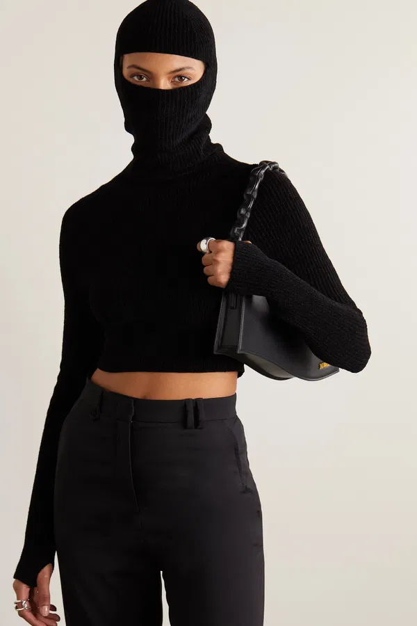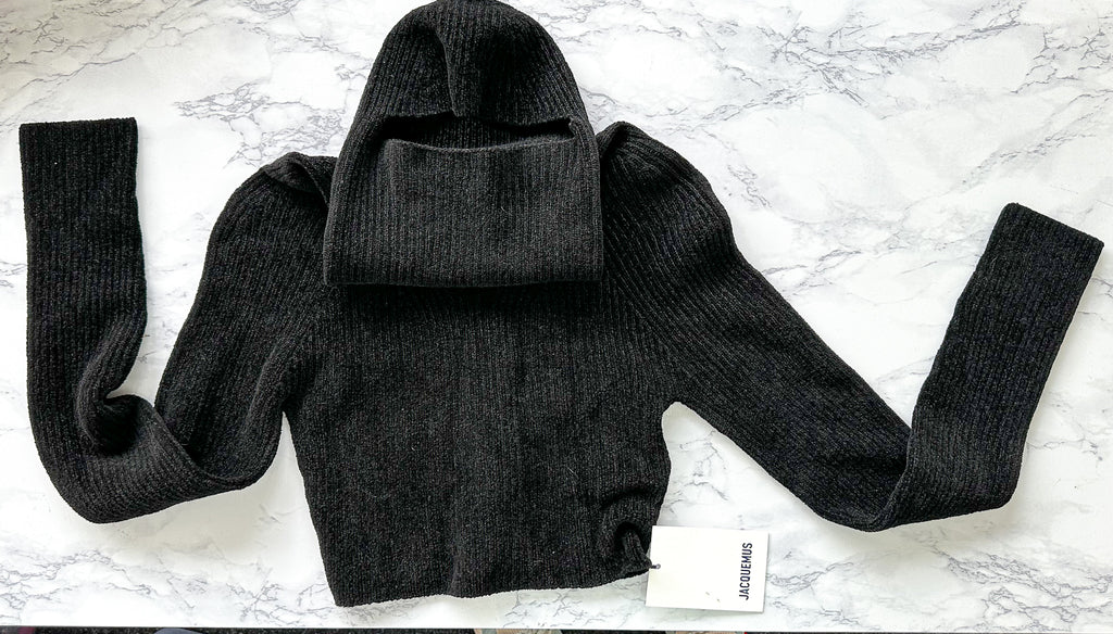 Jacquemus Cropped Hooded Balaclava Ribbed Black Sweater Top