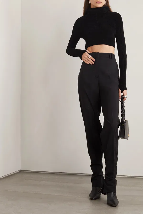 Jacquemus' sweater is designed with a hooded turtleneck for a streamlined look - and plenty of warmth. Made from black ribbed-knit, it has a cropped hem and long sleeves with thumb holes.