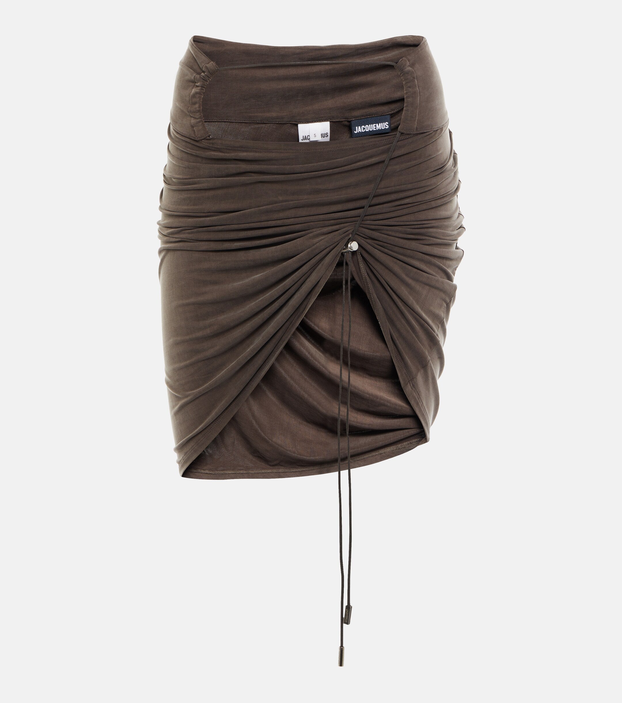 Take risks and make a statement with Jacquemus's La Jupe Espelho Court miniskirt. Its ruched drawstring details cinch your silhouette, while the slinky jersey fabric and low-waisted, asymmetric cut show off your daring sense of style. Show off your midriff and embrace adventure in this bold, must-have piece!