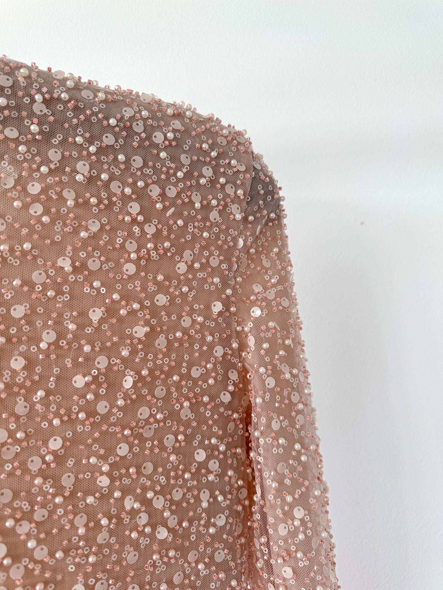 *Extremely delicate fabric. You must take extra care of it as it has lace and is fully embellished in beads. As stated on the tag, bead and sequin loss is normal and will not affect the overall look.