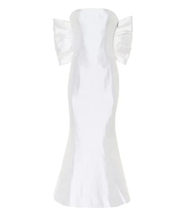 Rasario Bridal White Large Bow Back Strapless Wedding Dress
