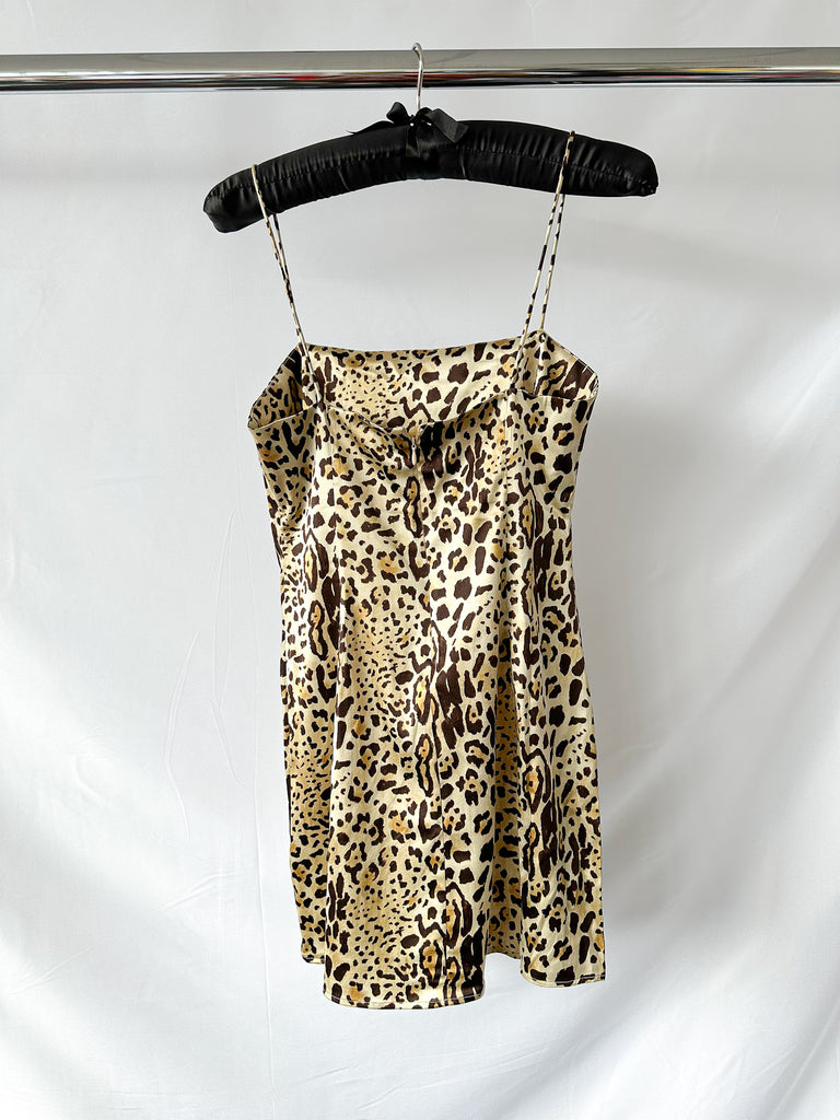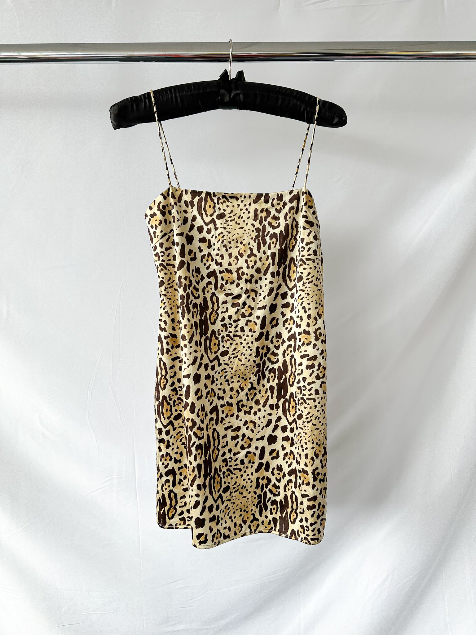 Anine Bing Cheetah Print Silk Satin Mini Slip Dress