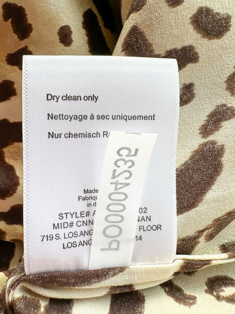 Turn heads with the Anine Bing Cheetah Print Silk Satin Mini Slip Dress. This playful piece combines luxurious silk satin with a bold cheetah print, perfect for adding a wild touch to your wardrobe. Its mini length and sleek slip design create a flirty silhouette that’s ideal for nights out or special occasions. Embrace your fierce side with effortless style and comfort.