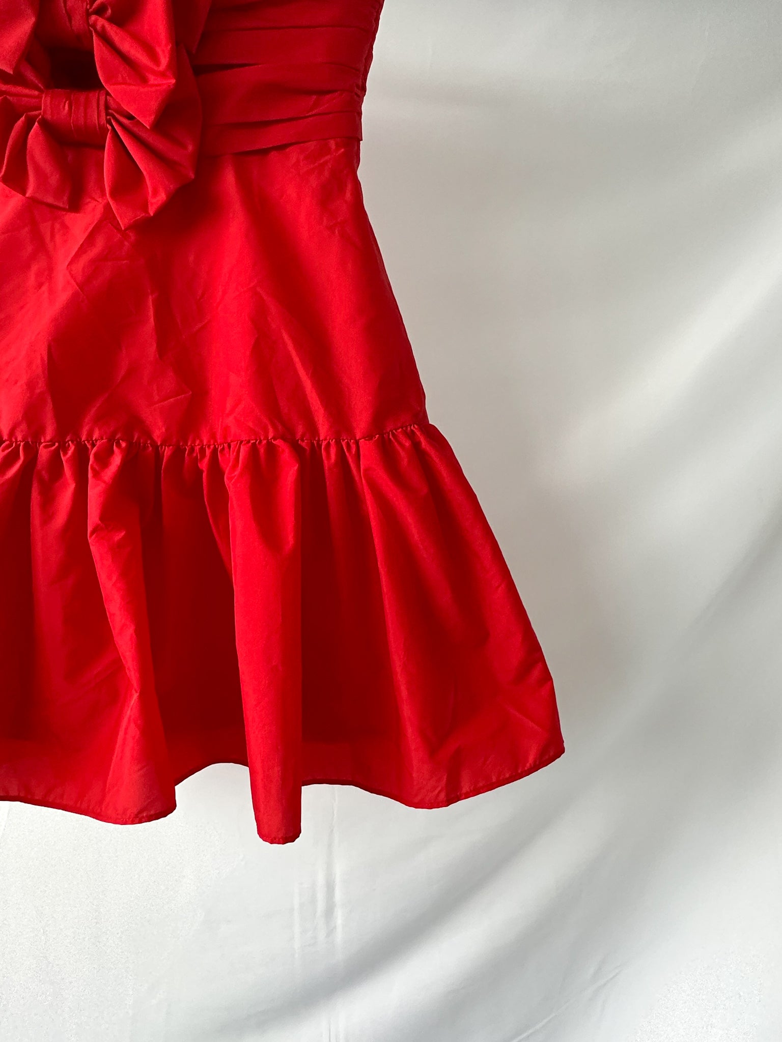 LoveShackFancy Red Woodlow Bow Front Mini Dress