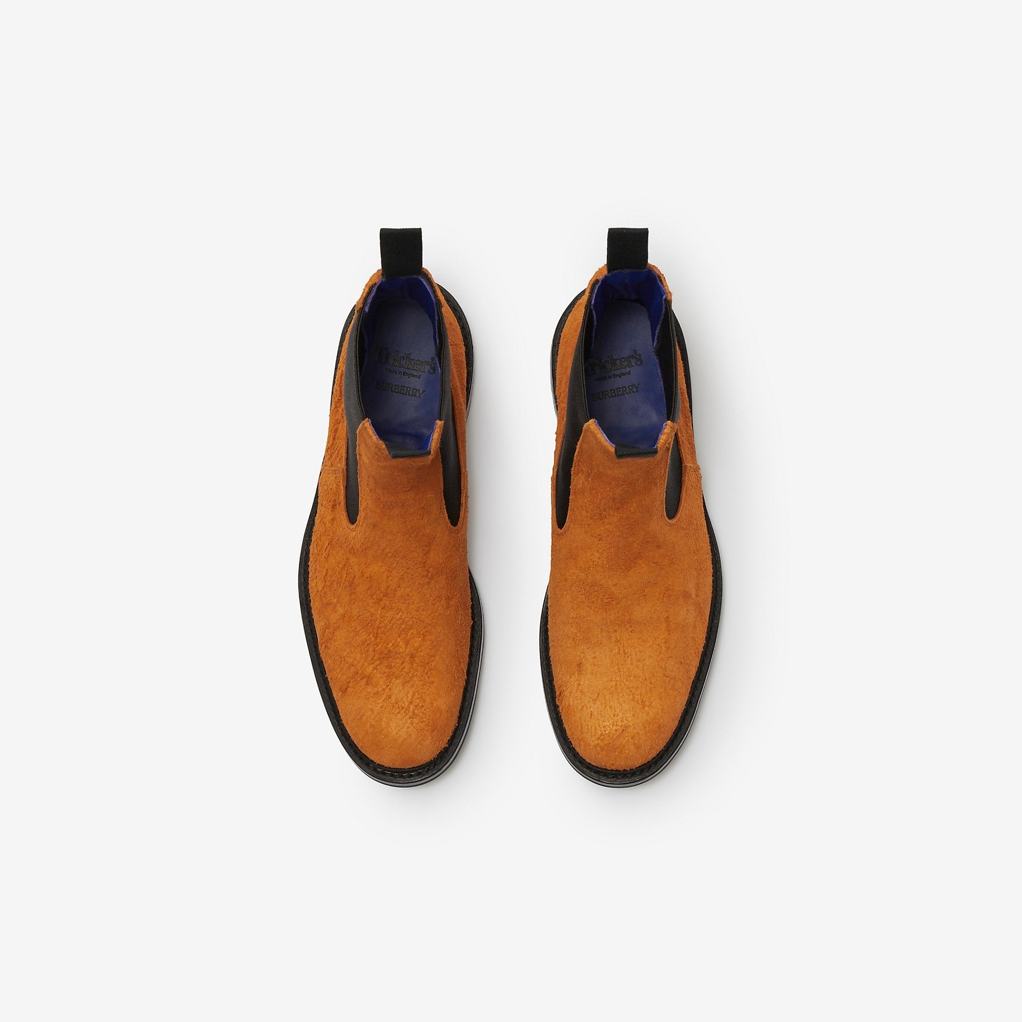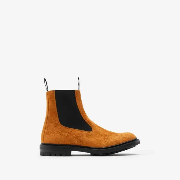 Introducing the ultimate collab - Burberry X Tricker's suede Chelsea boots. Handcrafted by Britain's oldest shoemaker, these limited-edition boots feature a Goodyear welted sole for durability and rubber tread for added grip (in case you want to bust a move). Almond-shaped toe and elasticated sides for comfort.