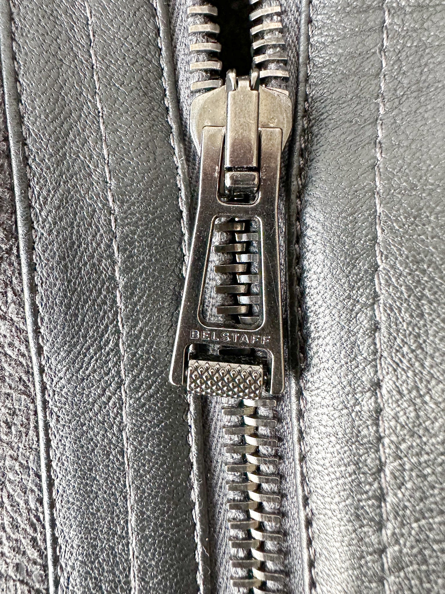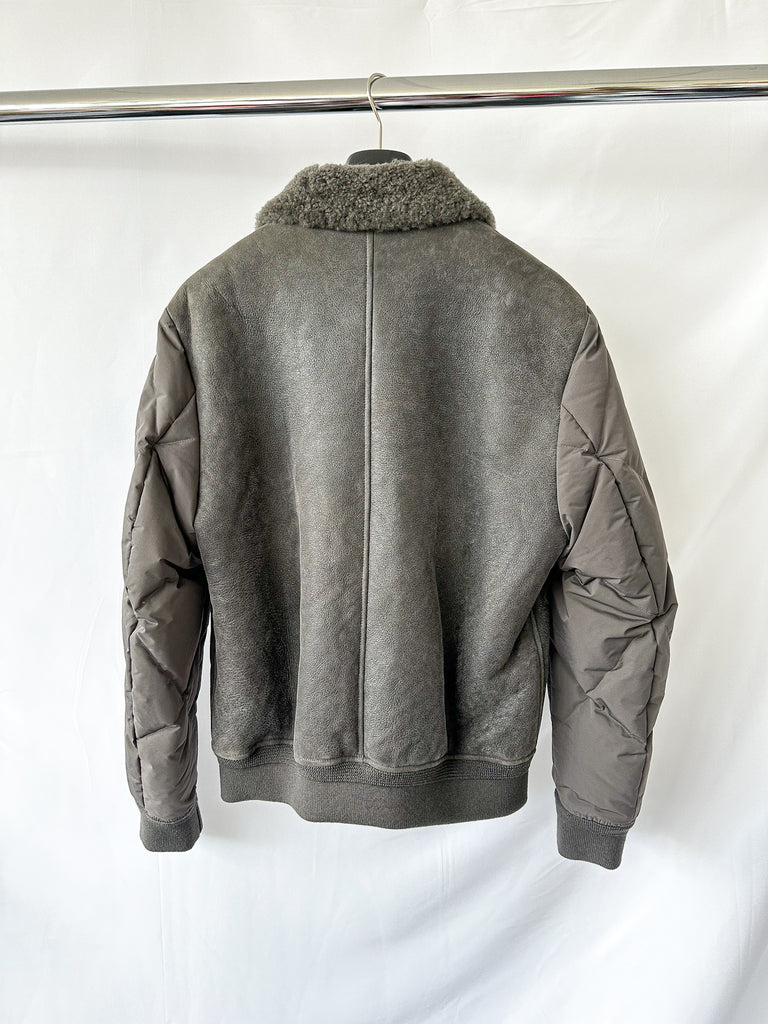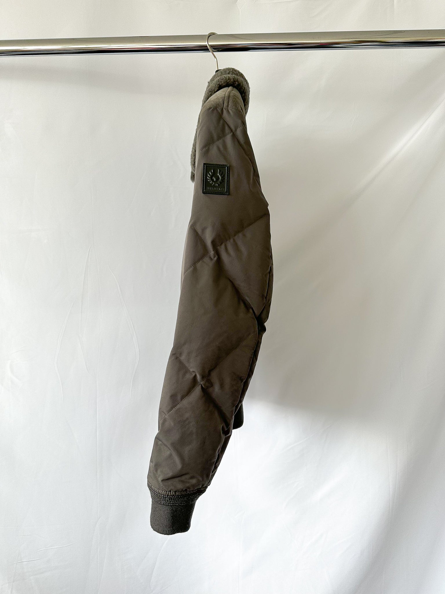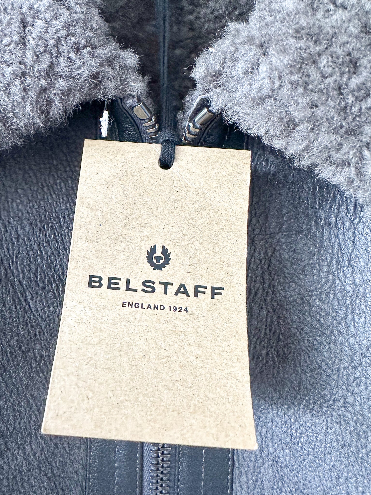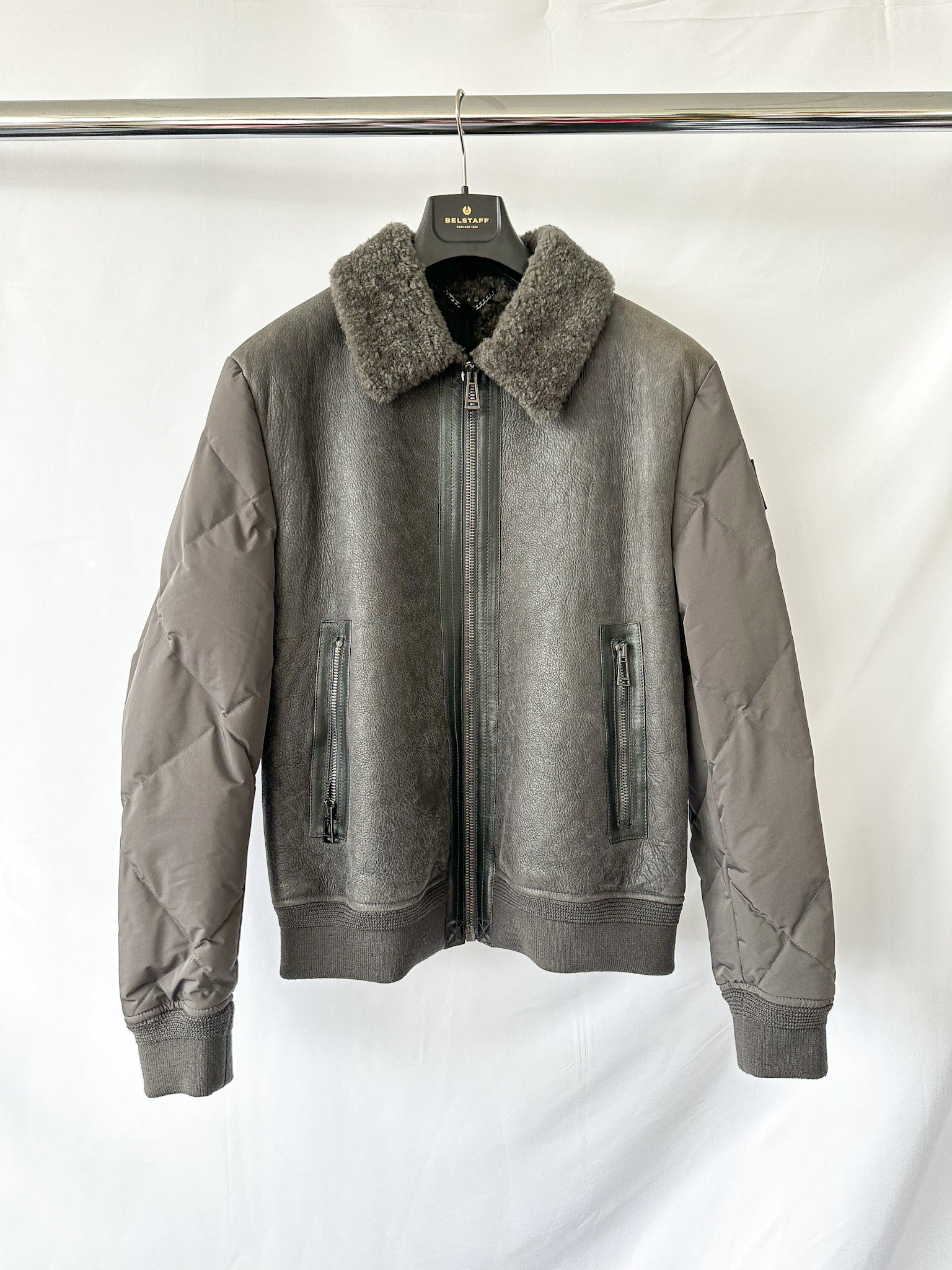 Stay cozy and stylish in the Belstaff Fellfield Shearling Jacket. Featuring a warm shearling torso and down-lined microfiber sleeves, this dark grey jacket blends comfort with modern edge. Perfect for chilly days when you want to look effortlessly cool while staying snug.