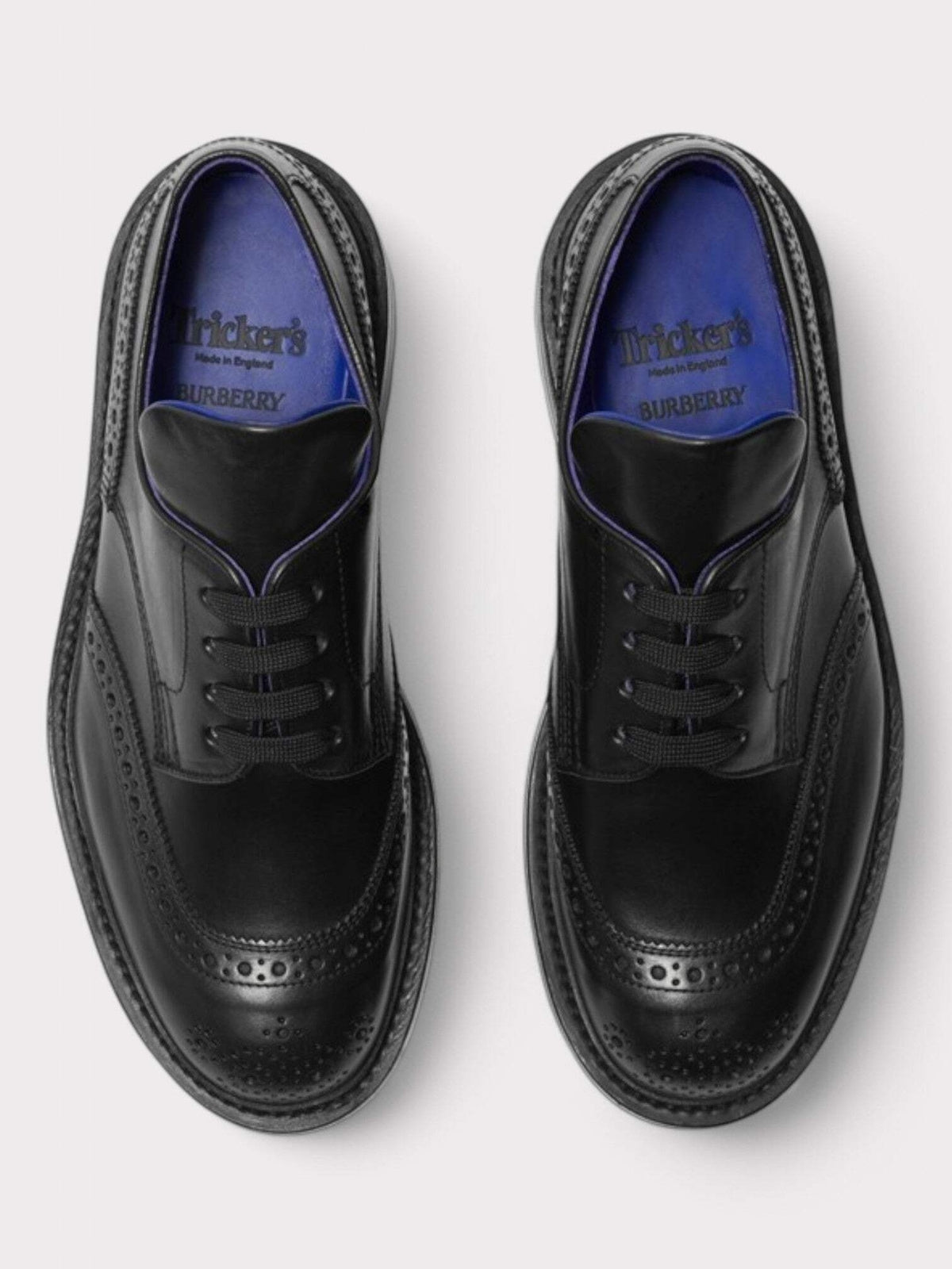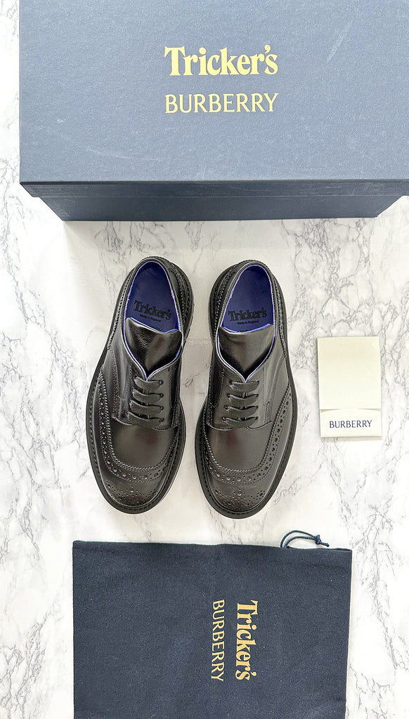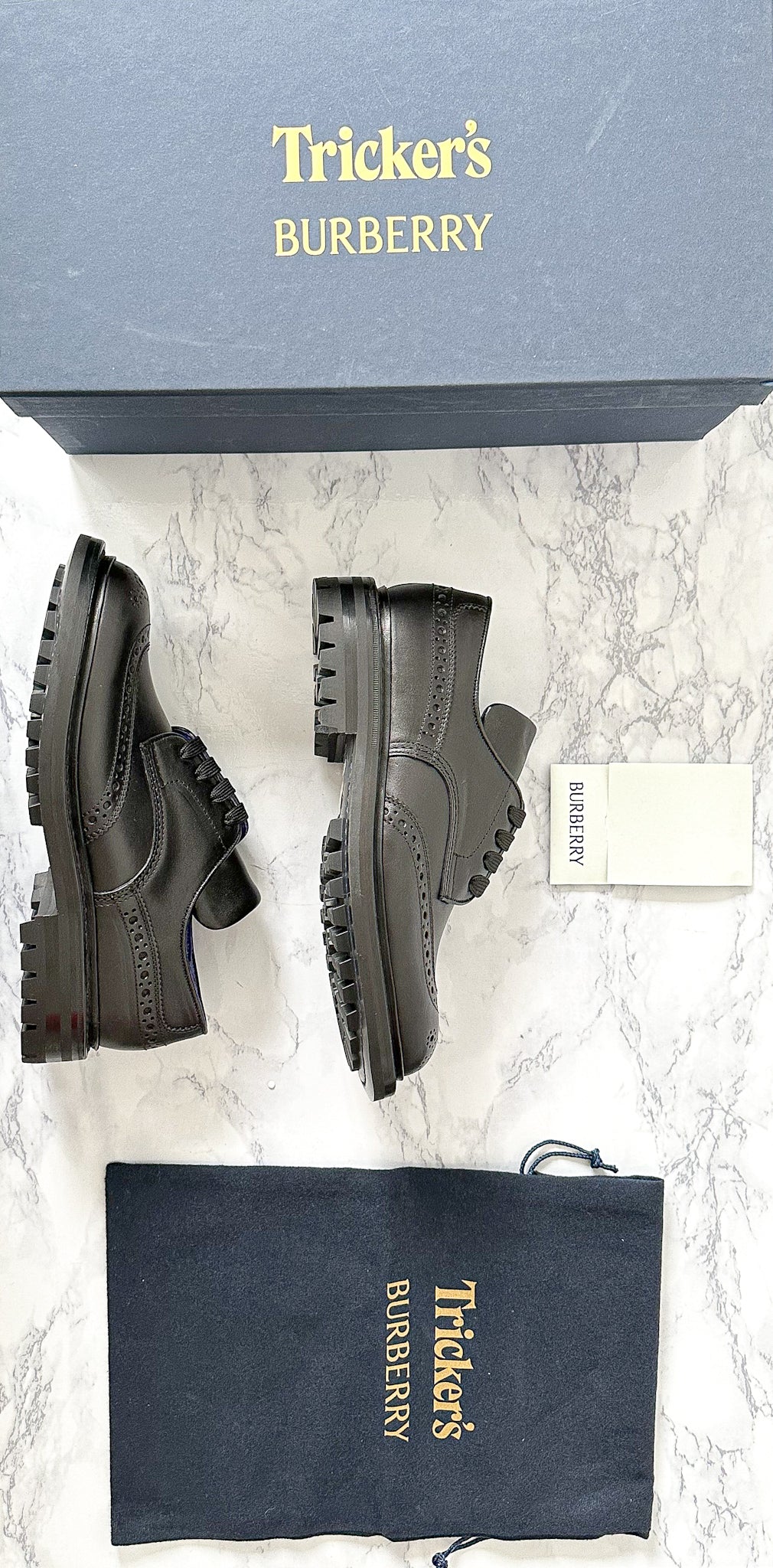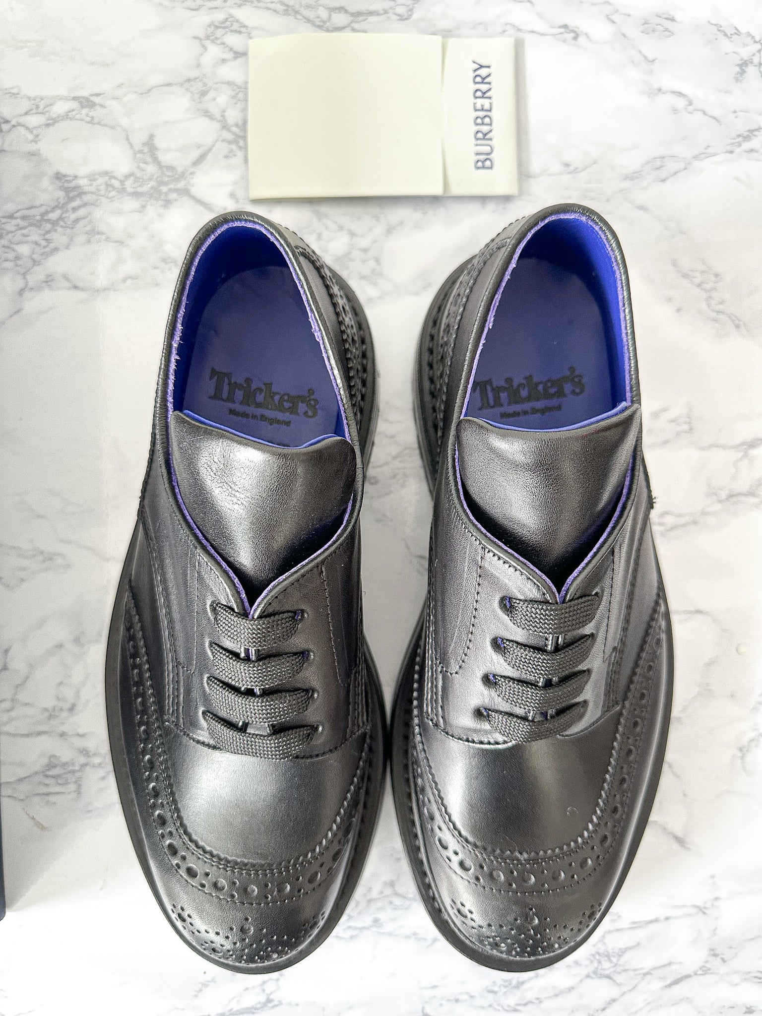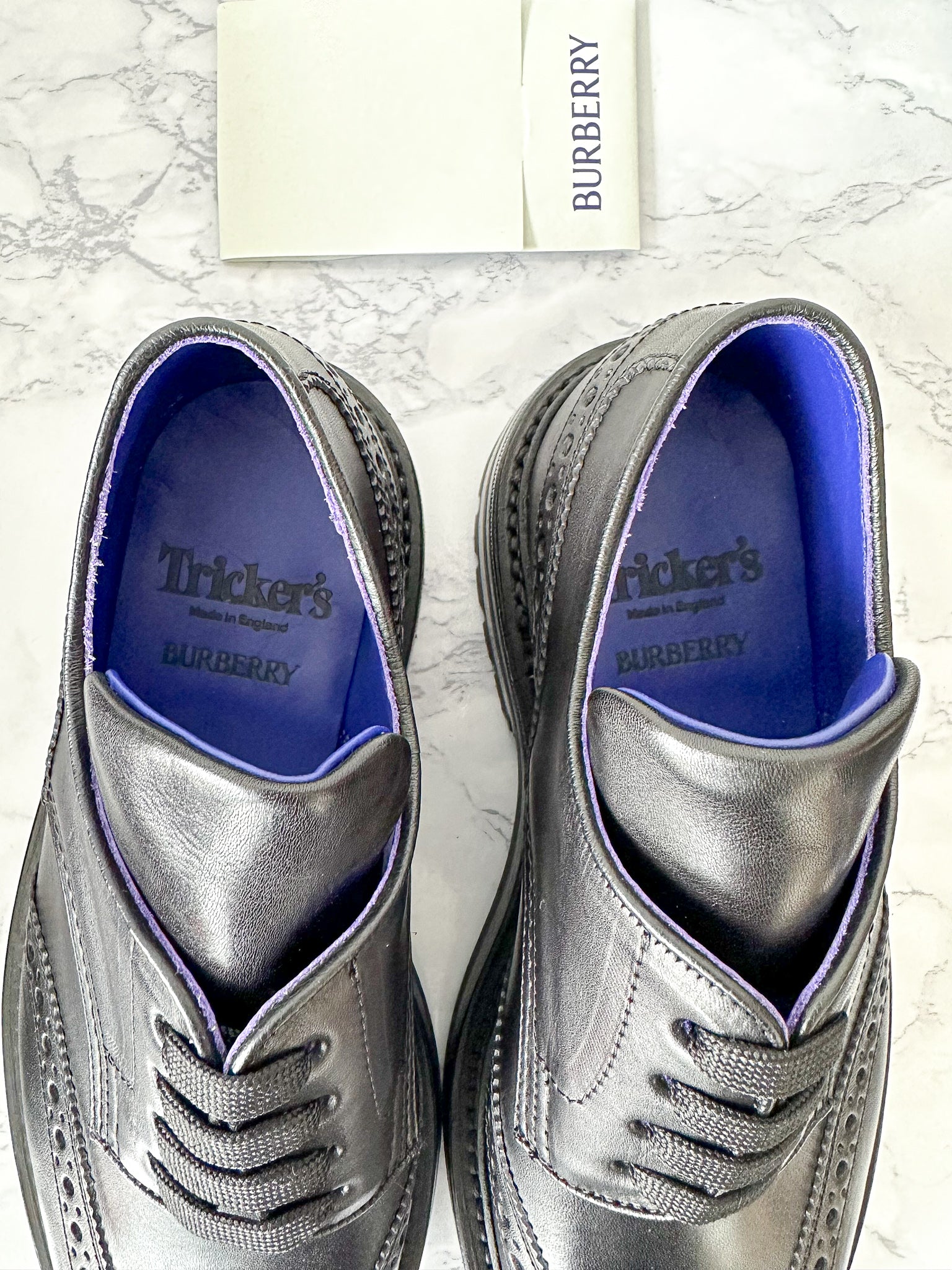 Indulge in pure luxury with the Burberry Tricker's Leather Devon Brogues in gorgeous deep purple. Made by Britain's oldest shoemaker in Northampton, these smooth calf leather brogues are a numbered, limited-edition design. Featuring an almond-shaped toe and lace-up closure, the Goodyear welted sole with rubber tread adds both style and functionality. Elevate your shoe game with this exclusive pair.